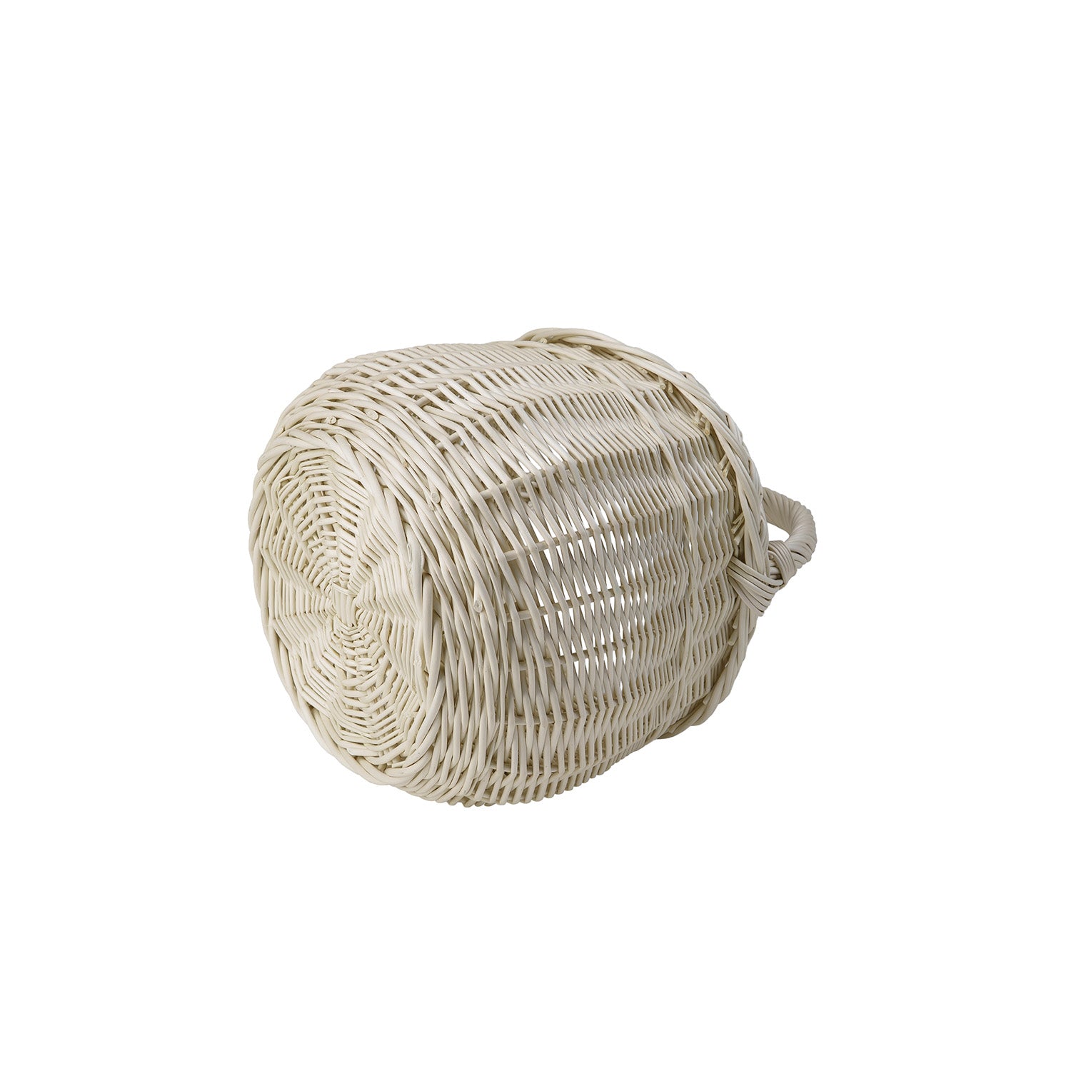 Eleganter Weiden-Einkaufskorb in Creme, aufgepeppt durch einen dezenten, honigfarbenen Streifen am Korper. Die Oberkante wird von einem dekorativen, handgeflochtenen Zopf abgeschlossen, der zugleich den Reifen verstärkt. Die schlanke, ovale Form und der hohe, fest befestigte Griff machen den Korb leicht, handlich und bequem zu tragen. Ohne Futter und Verschluss.