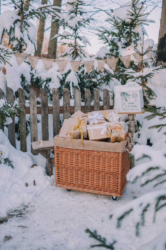 Salux ψάθινο καλάθι για τζάκι με επένδυση από λινάτσα και ροδάκια TheWickerStories
