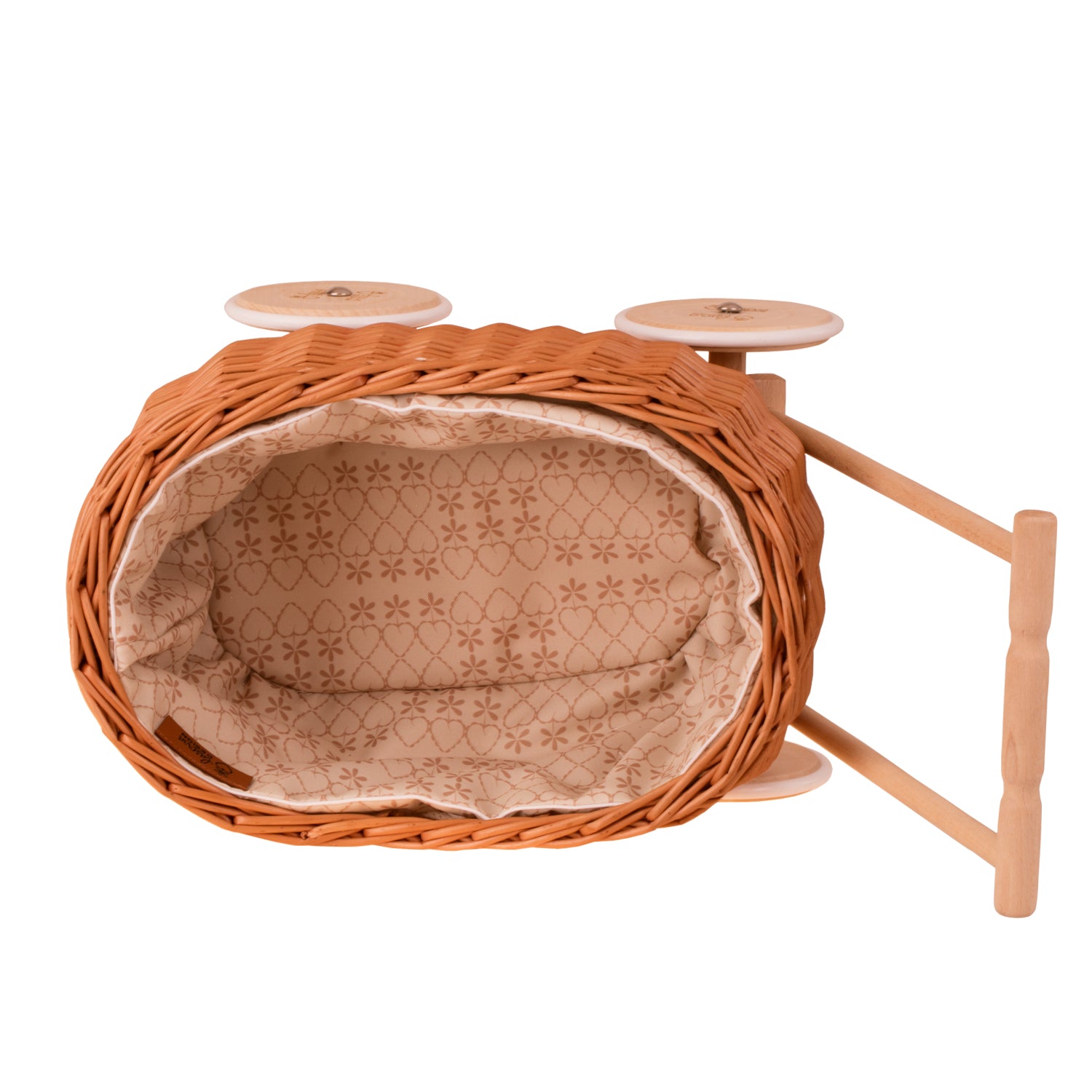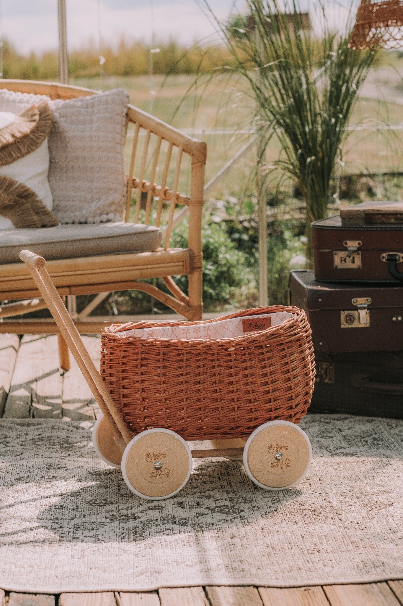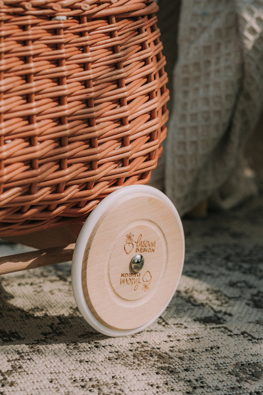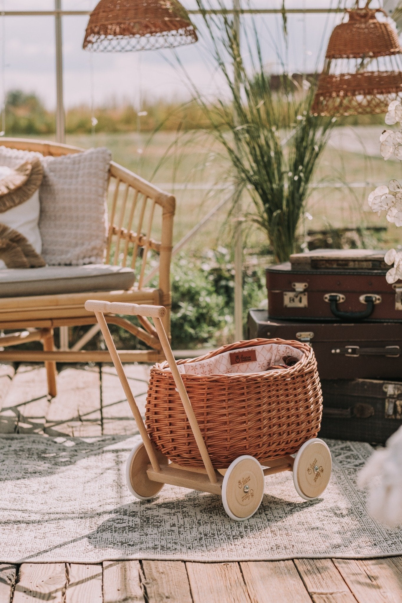 La cistella està fabricada a la UE amb vímet natural segons les tradicions d'ofici teixidor de Polònia inscrites a la Llista Representativa del Patrimoni Cultural Immaterial de la UNESCO. Aquest carretó és una excel·lent alternativa als joguets de plàstic. Triant un producte fet a mà amb materials naturals, recolzes els artesans locals i cuides el planeta. És un regal funcional i bonic que encantarà tant a nens com a adults.