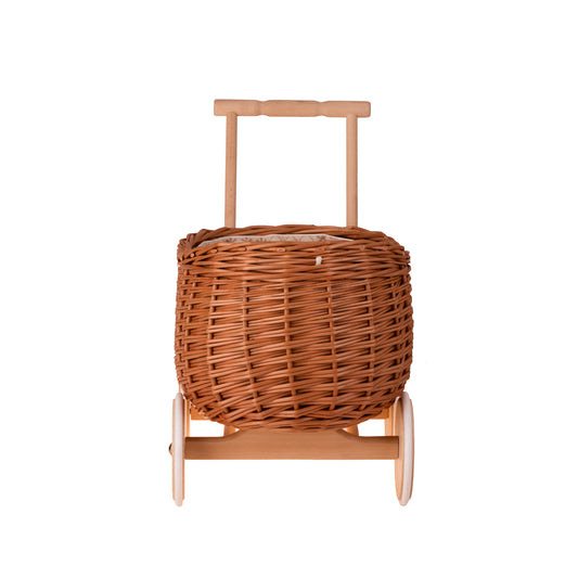 Luke carro de vímet per empènyar amb acabat crema, amb nansa i rodes TheWickerStories