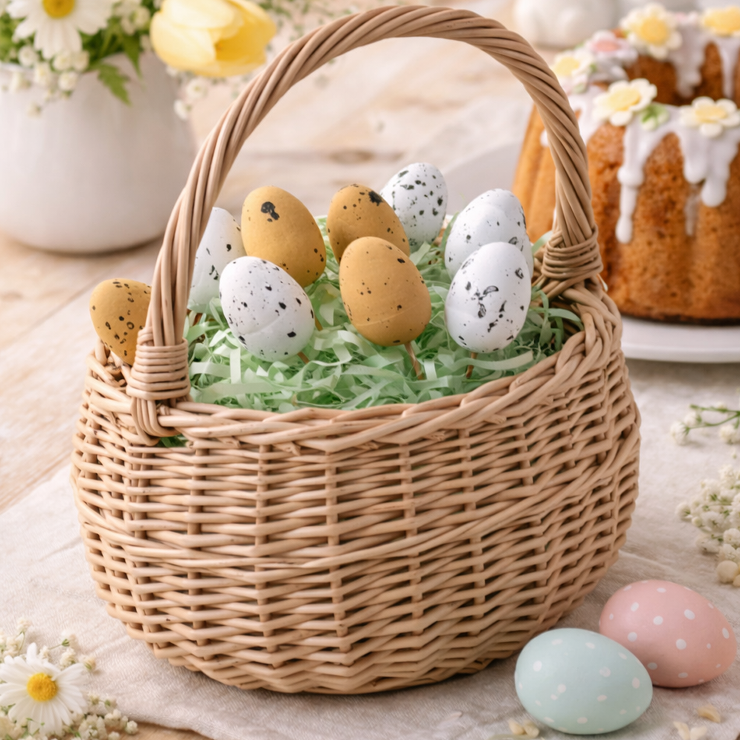 Choisissez un panier tressé à la main en osier naturel – durable, écologique et prêt à apporter à votre Pâques élégance et simplicité.