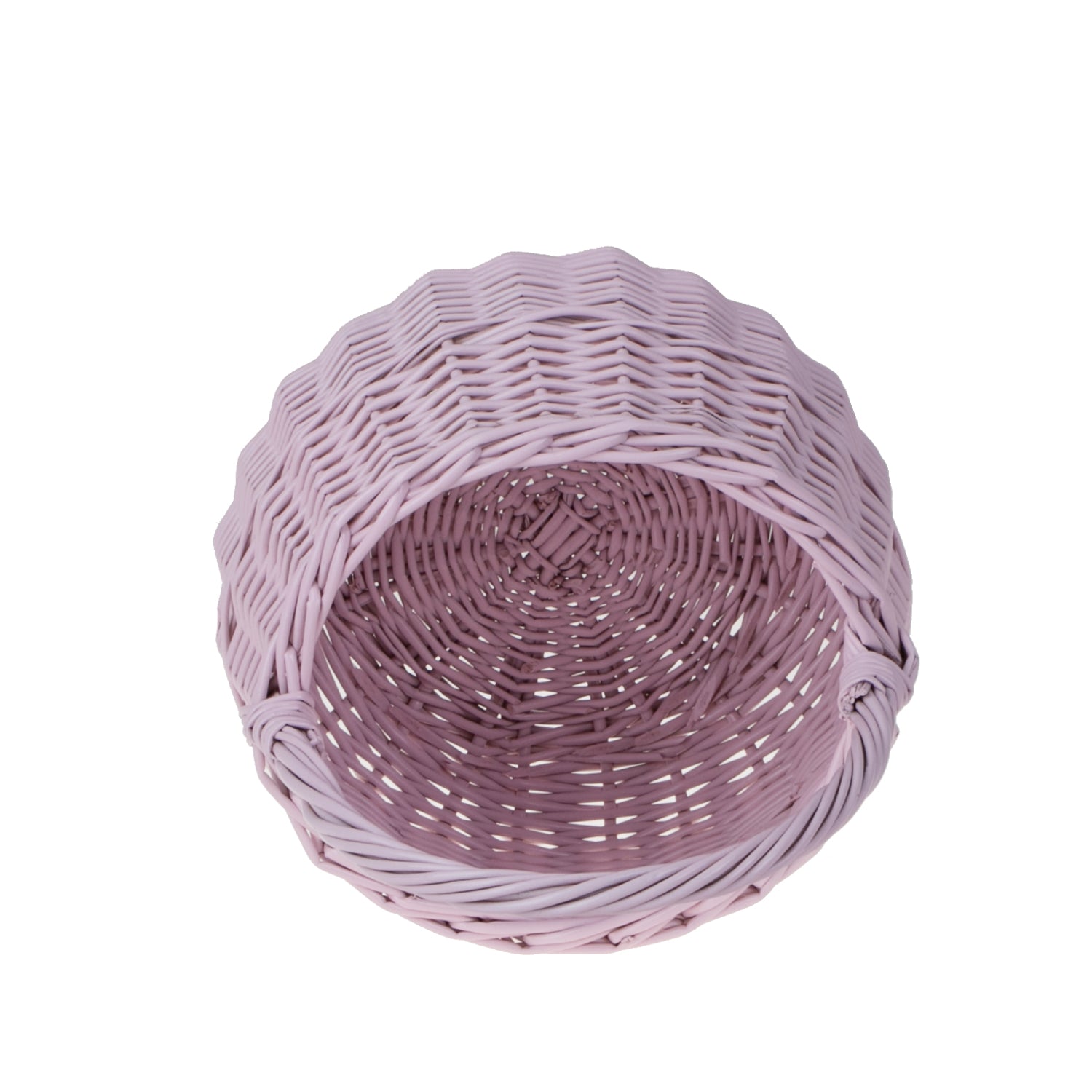 Rond et soigneusement tressé, ce petit panier de Pâques rose présente un rendu naturel et élégant. Il possède une anse solide arquée pour un port facile, un tressage dense et régulier ainsi qu'un fond stable. Les parois légèrement arrondies et le rebord renforcé soulignent la qualité de la fabrication. Le panier est simple, esthétique et prêt pour vos compositions de Pâques. Dimensions : Ø15 H:10/20 (cm).
