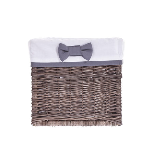 Set van drie rieten manden in een bruine kleur die betovert met een rustige esthetiek en veel aandacht voor detail. Elke mand heeft een gelijkmatige, dichte vlecht en een netjes afgewerkte rand. De binnenkant is gevoerd met witte stof waarvan de brede omslag elegant over de rand valt en afgewerkt is met een subtiele grijze bies en een decoratief strikje in bijpassende kleur. Het eenvoudige, handvatloze ontwerp past gemakkelijk in veel interieurs. De hoes is afneembaar en machinewasbaar op 30°C; de mand zelf volstaat met afnemen met een vochtige doek.