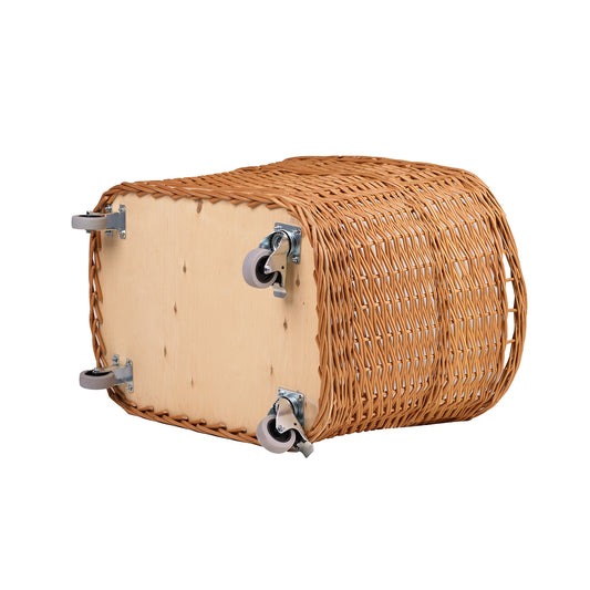 Praktische wielen met rem maken het gemakkelijk om de mand te verplaatsen en veilig te plaatsen op de gewenste plek. Verhoogde decoratieve handvatten maken het manoeuvreren eenvoudiger en geven een elegante uitstraling. De combinatie van mobiliteit en een degelijke constructie maakt de mand comfortabel in dagelijks gebruik.