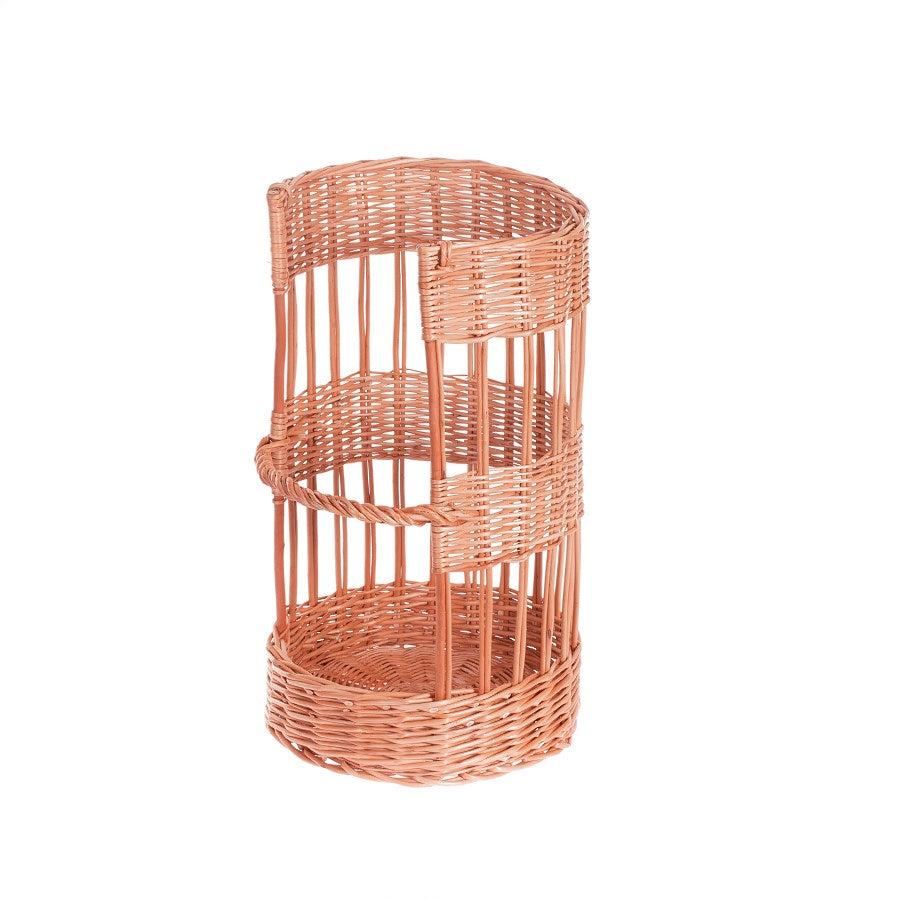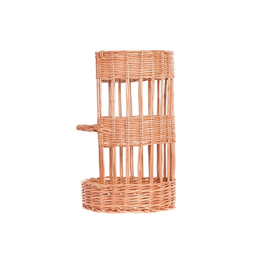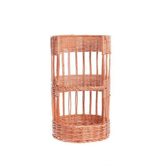 Een elegante, hoge mand van massief vlechtwerk is ontwikkeld voor baguettes en lange broden. Verticale staven vormen een lichte, open wand en dicht gevlochten randen verstevigen de constructie. Binnenin bevindt zich een praktische indeling in twee niveaus die het sorteren van brood vergemakkelijkt en snelle toegang zonder deksel mogelijk maakt. Glad afgewerkte randen beschermen handen en de textuur van het brood tegen haken.