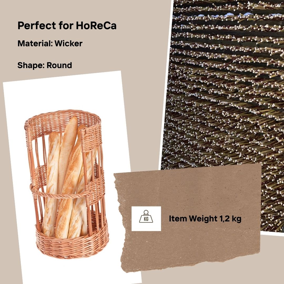 Als rietmand voor baguettes is het uitstekend inzetbaar op de bakkerstoonbank, in de supermarkt of op het hotelbuffet. De ademende constructie bevordert luchtcirculatie en helpt een knapperige korst te behouden. De hoge vorm bespaart werkbladruimte en de twee niveaus maken het mogelijk verschillende soorten brood te scheiden – klassieke baguettes, tarwe 'stangenbrot' of volkoren varianten.