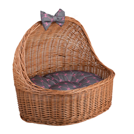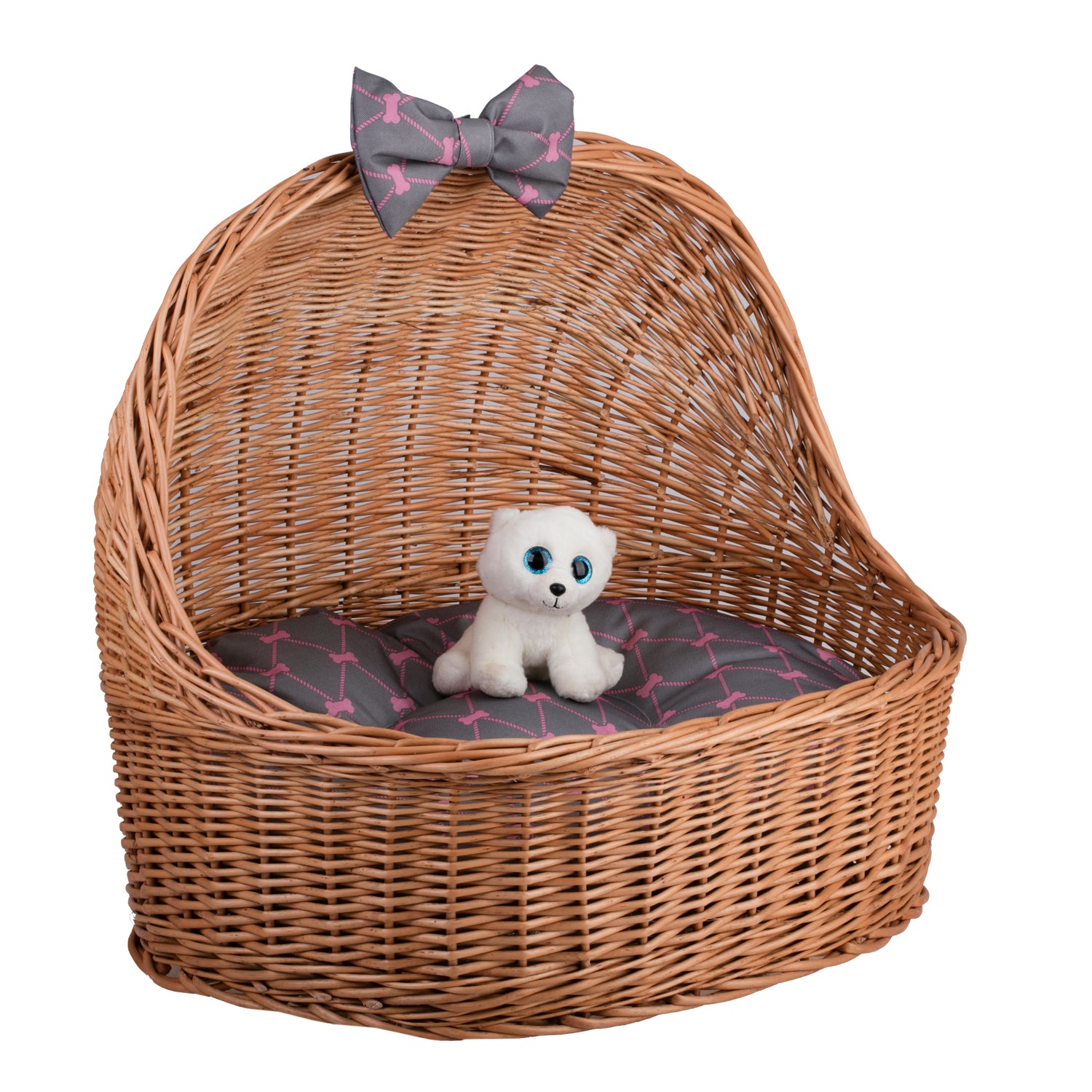Jouw specificatie van Elarion rieten huisje voor hond en kat met kussen en strik