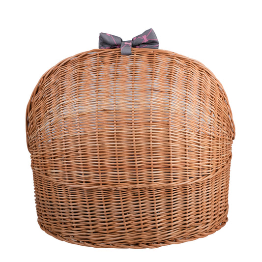 Dit rieten huisje voor huisdieren valt op door de natuurlijke afwerking en de zorgvuldig gevormde rugleuning die het ligplekje aan de achterkant en zijkanten omsluit. De vlecht is dicht en gelijkmatig en de randen zijn zacht afgerond voor extra veiligheid. Inclusief is een zacht, waterdicht kussen in een neutrale tint en een subtiele stoffen strik die charme toevoegt. De voorkant is breed, zodat je huisdier zonder stress naar binnen kan, en de stabiele bodem zorgt voor comfort op elk oppervlak. Dit handgemaakte rieten huisje is ideaal als handgemaakt rieten huisdierbed voor katten en kleine tot middelgrote honden.
