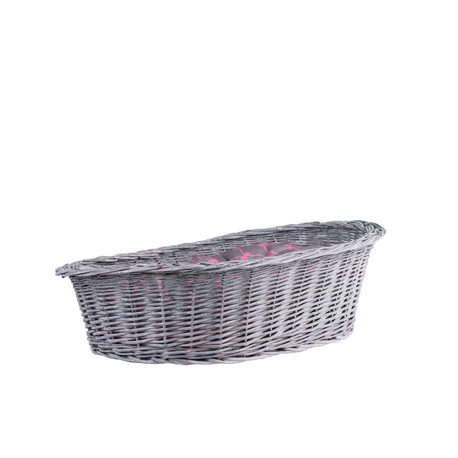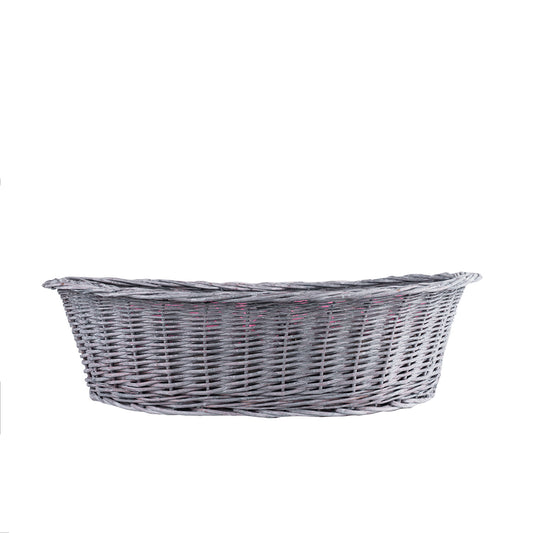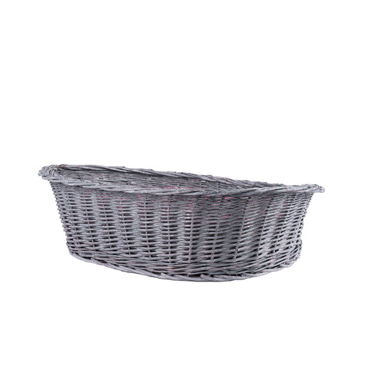 De mand is gemaakt van Europees riet/wicker – een hernieuwbare, biologisch afbreekbare grondstof die veilig is voor huisdieren. Elk exemplaar is handgemaakt in de EU: handvlechten zorgt voor duurzaamheid, flexibiliteit van de vezels en een unieke uitstraling. De grijze coating benadrukt de structuur en het natuurlijke materiaal ademt en weerstaat dagelijks gebruik goed.