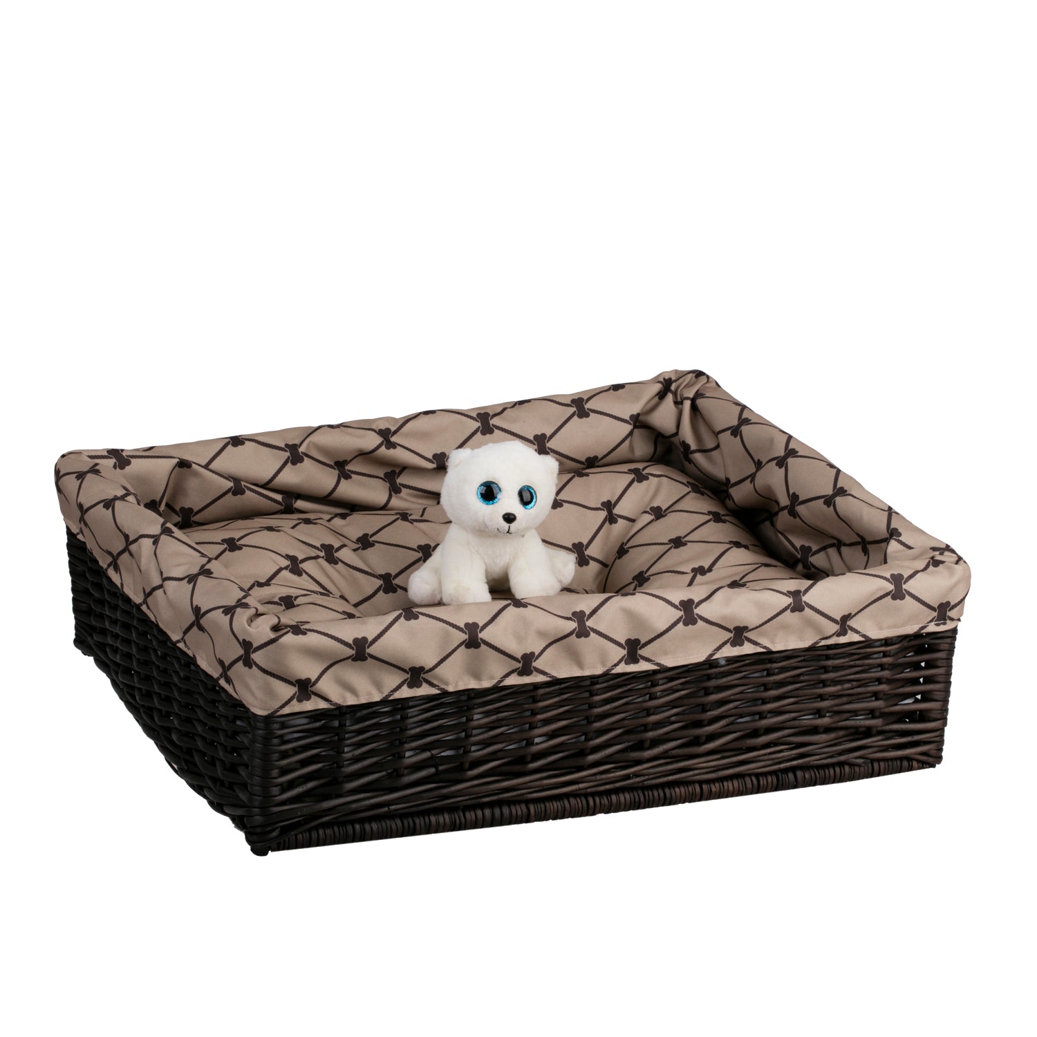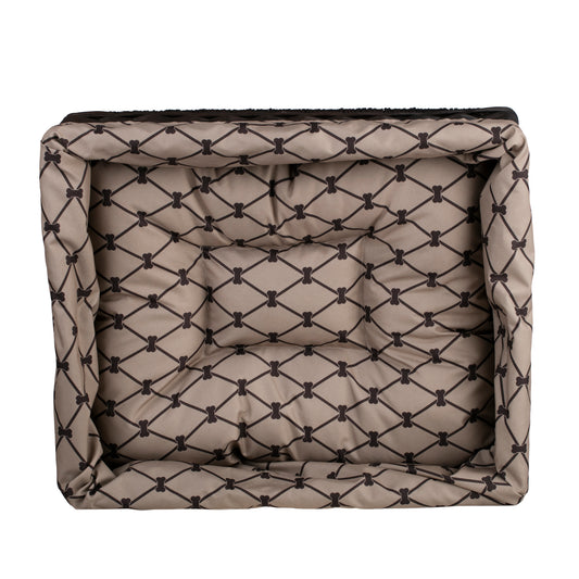 Voor comfort zorgt het zachte, uitneembare kussen in beige. Het oppervlak is waterafstotend, zodat vlekken snel te verwijderen zijn – veeg het gewoon af met een vochtige doek. De binnenkant van de mand is glad en aangenaam en de lage randen maken het gemakkelijk voor kleinere en oudere dieren om in te stappen. De wanden blijven stabiel om een gevoel van veilige omhulling te bieden.