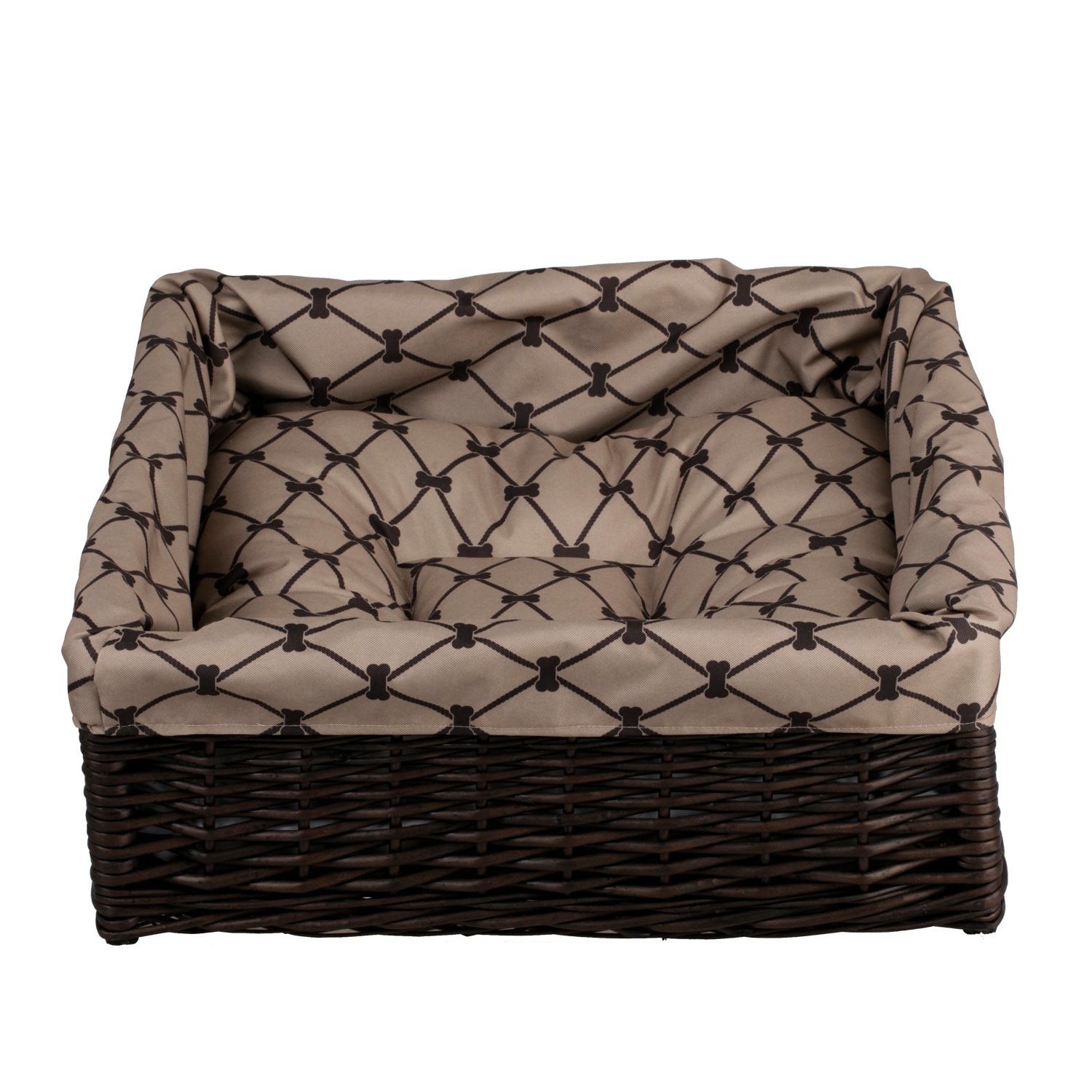 Epimoria Rieten mand voor hond en kat met beige bies en een waterdicht kussen