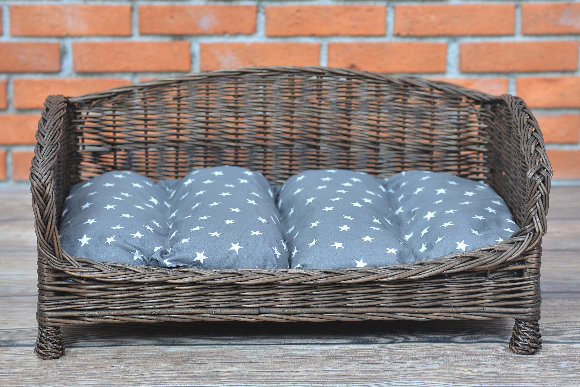 Erivia rieten mand voor hond en kat met grijs kussen en lage instap