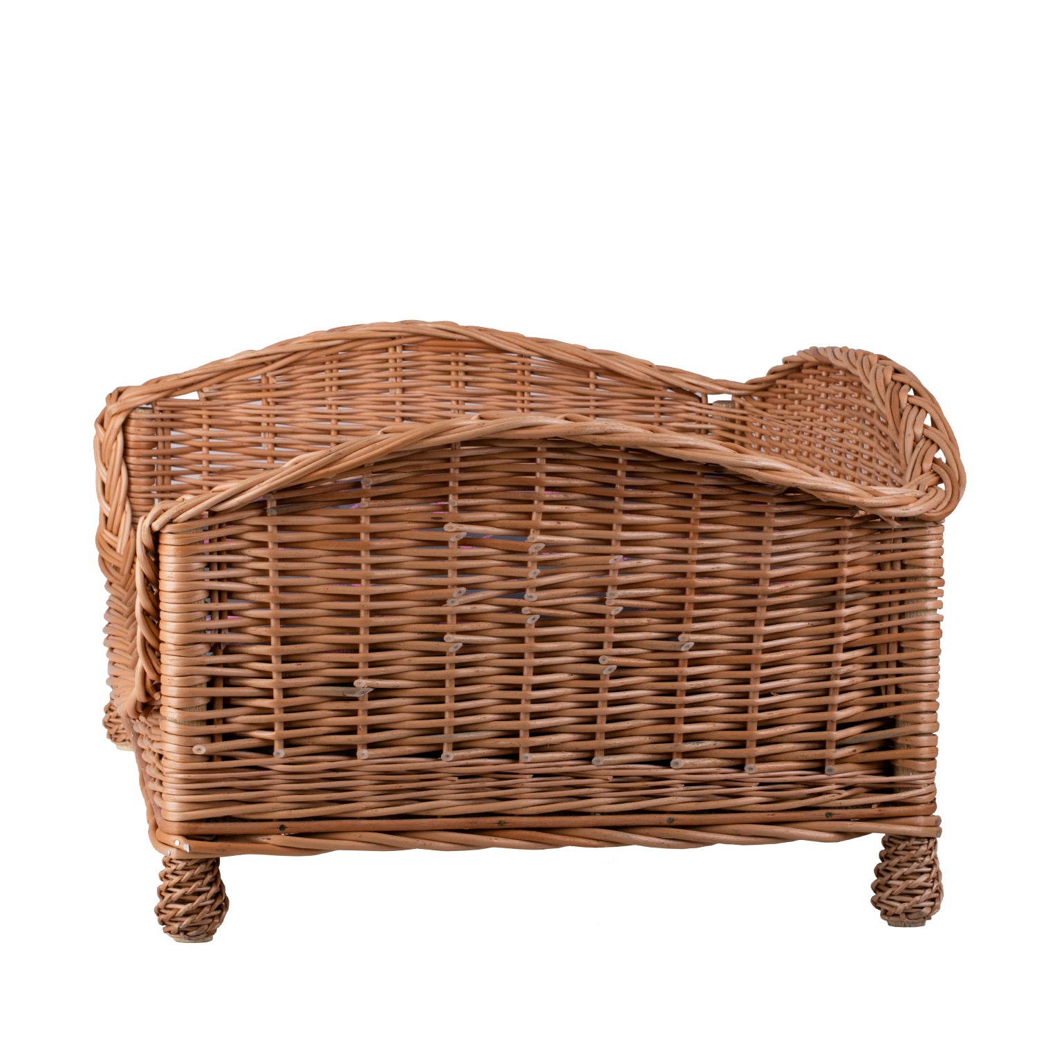 Elegant ligplaats van natuurlijk wilgenvlechtwerk overtuigt door zijn lichtheid en stevigheid. Deze gevlochten mand voor je huisdier heeft een lagere voorkant die het instappen vergemakkelijkt, terwijl de zacht gevormde zijkanten en de hogere rugleuning een gezellige, bankachtige relaxzone creëren. Een dicht, gelijkmatig vlechtwerk benadrukt de warme tint van het materiaal en de zorgvuldig afgewerkte randen. Het geheel staat op gevlochten pootjes en in de set zit een zachte, uitneembare grijze kussen.