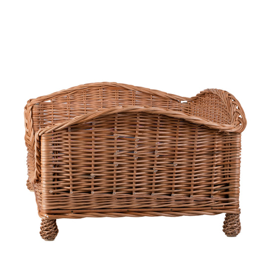 De ligplaats is perfect voor katten en kleine honden en biedt ze een comfortabele plek om te slapen, te spelen en het huiselijke leven te observeren. De lage instap moedigt ook senioren of kleine huisdieren aan om gemakkelijk binnen te stappen, terwijl de hoge zijkanten een gevoel van beschutting geven en het hoofd comfortabel laten rusten. Het natuurlijke karakter en de klassieke vorm passen zich gemakkelijk aan de woonkamer, slaapkamer of kinderkamer aan zonder de inrichting te overheersen. De gevlochten structuur maakt het interieur warmer en geeft het een natuurlijke uitstraling.