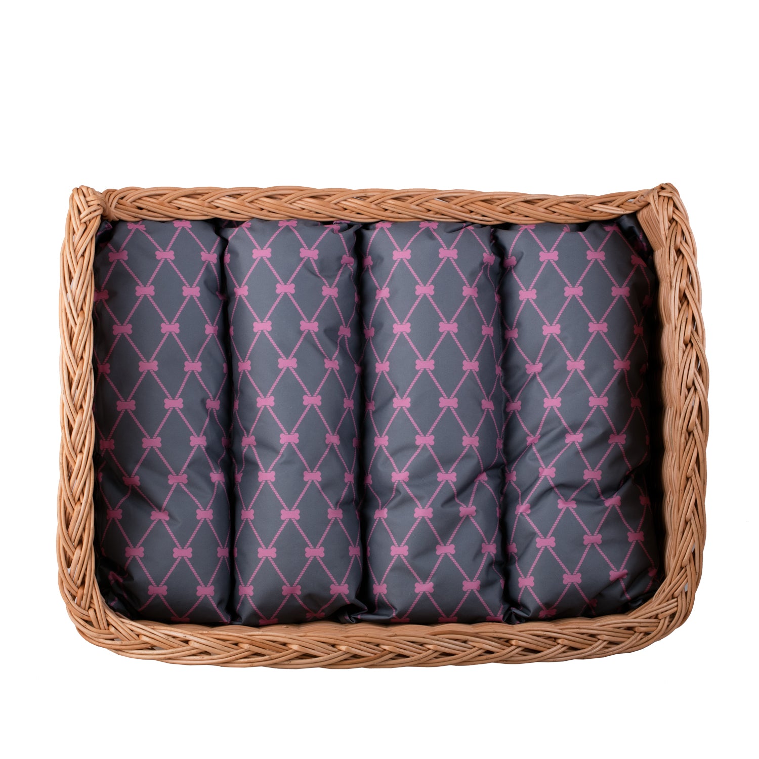 Jouw specificatie van Erivia rieten mand voor honden en katten met grijs kussen en lage instap