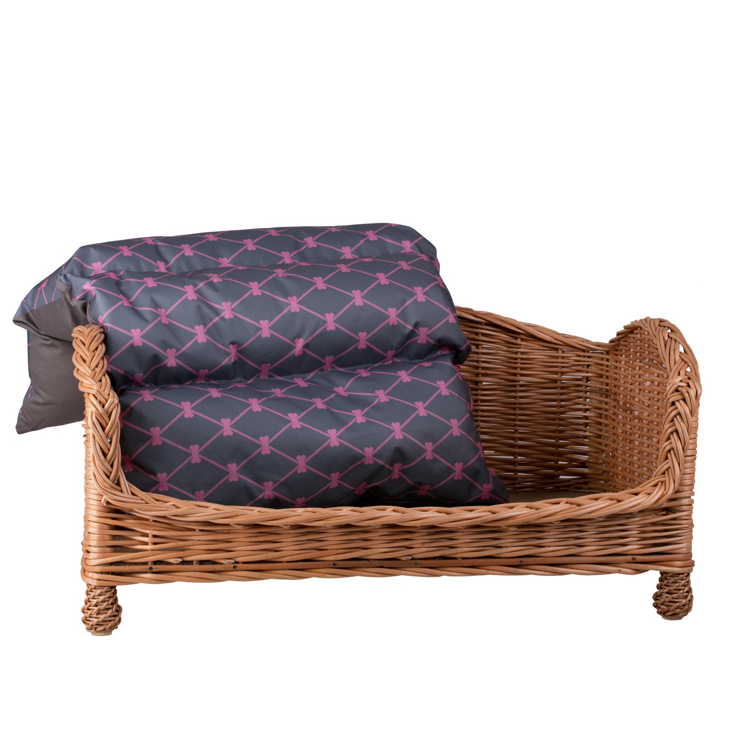 Erivia rieten mand voor honden en katten met grijs kussen en lage instap