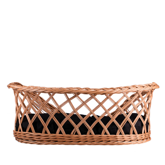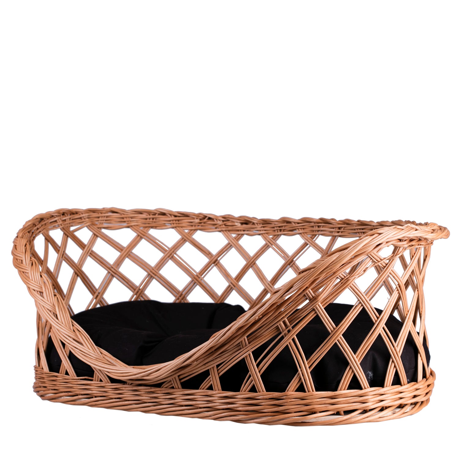 Esnoria rieten mand als ligplaats voor honden en katten met zwart kussen en lage instap