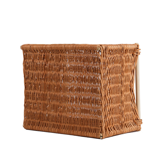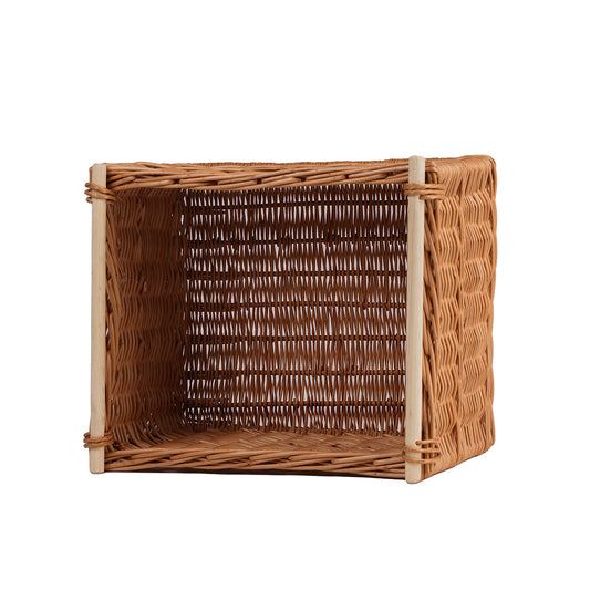 Rechthoekige, ruime rieten mand met een nette, gelijkmatige vlecht die indruk maakt door degelijke afwerking en verzorgde details. De zijkanten zijn uitgevoerd in een dichte, stabiele vlecht en de bovenrand is versterkt met een stevige rand. Aan beide zijden bevinden zich gladde houten handgrepen die het grijpen en tillen vergemakkelijken. Een stabiele bodem zorgt voor een veilige plaatsing, ook bij volledige belasting.