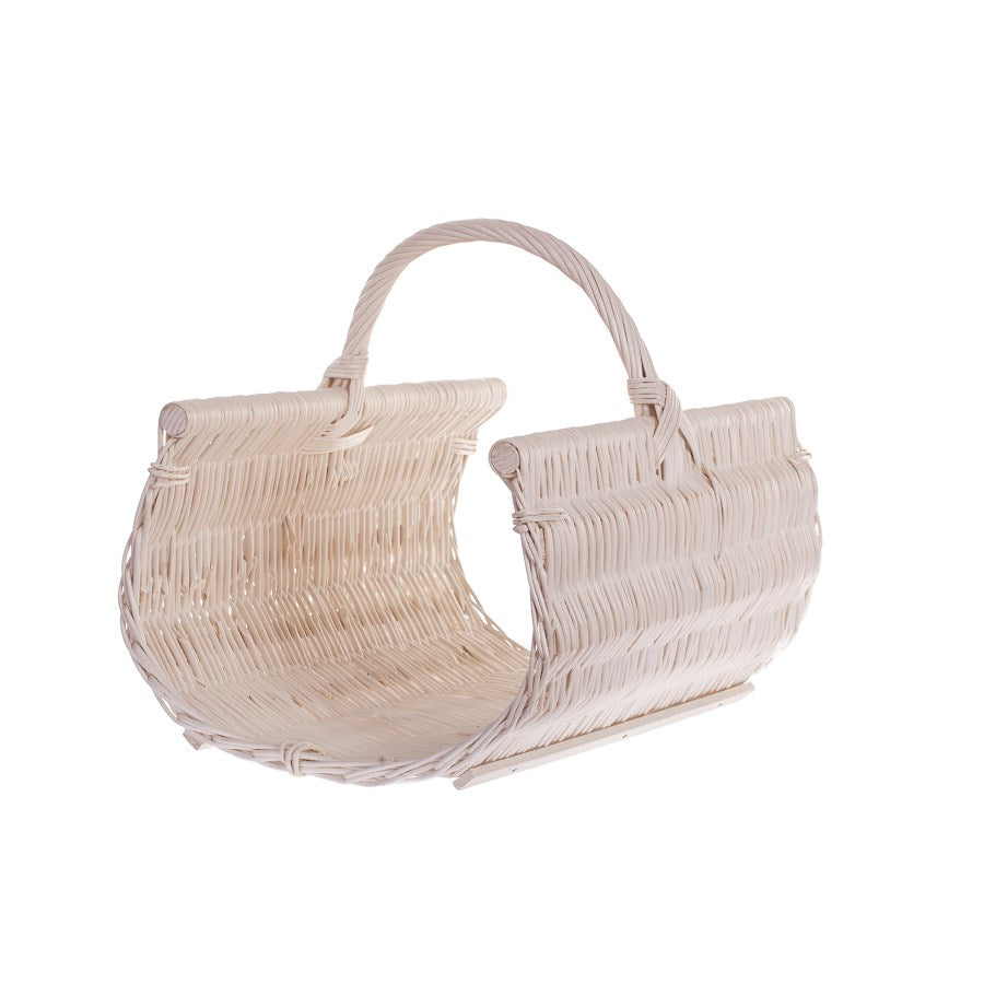 Een elegante beige mand voor haardhout valt op door de vloeiende, wiegende lijn en zorgvuldig afgewerkte randen. Open zijden bieden handige ruimte voor houtblokken en het centrale, stevige handvat maakt het dragen gemakkelijk. Een dichte vlecht van gelijkmatige staven geeft de vorm structuur en opgerolde randen beschermen de kanten tegen slijtage. De subtiele glans van natuurlijk riet benadrukt het ambachtelijke karakter.
