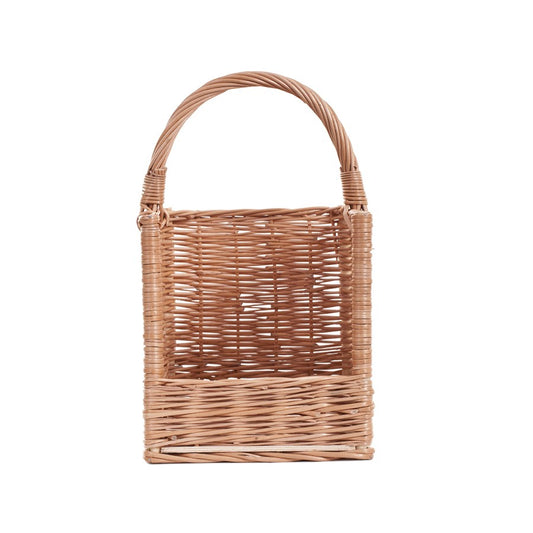 Feloria Rieten mand voor haardhout met handvat en verlaagde voorkant