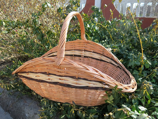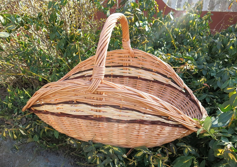 De mand is een veelzijdige hulp in huis en tuin: hij is ook geschikt voor het opbergen van dekens, kussens, kranten, speelgoed of voor het verzamelen van dennenappels. Het onderhoud is eenvoudig – gebruik schoon water met een beetje mild afwasmiddel en een zachte borstel, spoel grondig en laat drogen op een geventileerde plek. Regelmatig opfrissen behoudt het fraaie uiterlijk jarenlang. Dit is vakmanschap uit de EU.