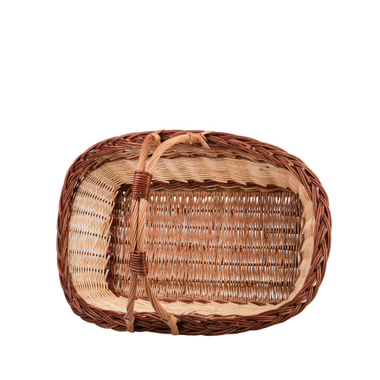 Elk exemplaar wordt in Europa gemaakt van geselecteerde wilgentakken die na de oogst worden gesorteerd, gedroogd en met de hand gevlochten door ervaren ambachtslieden. Handgemaakt zorgt voor duurzaamheid en een uniek karakter, en natuurlijk riet is een hernieuwbaar en volledig biologisch afbreekbaar materiaal. Het ontbreken van plastic en de nobele natuurlijke glans benadrukken de ecologische stijl. Dichte, gelijkmatige vlechtwerk garandeert stevigheid voor jaren.