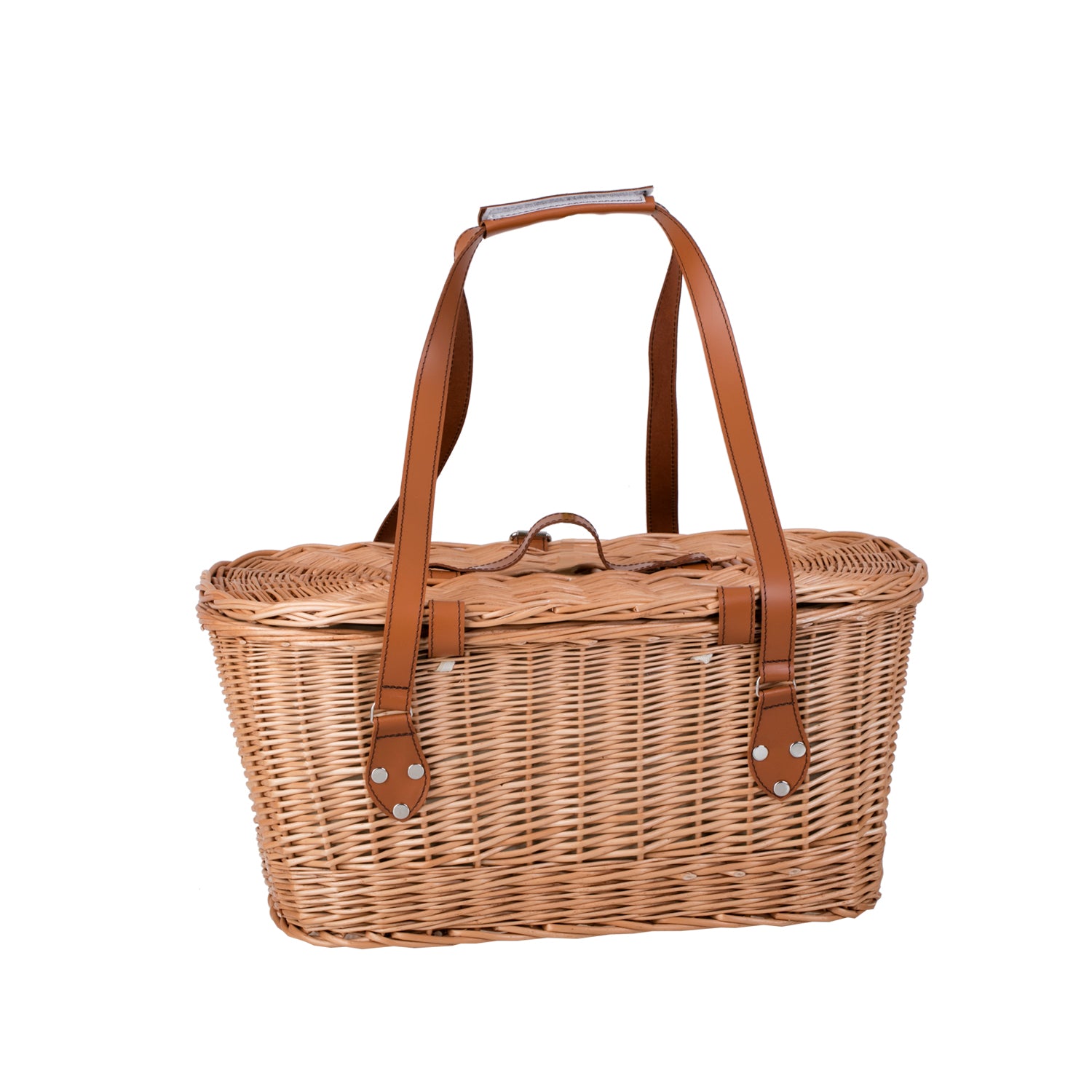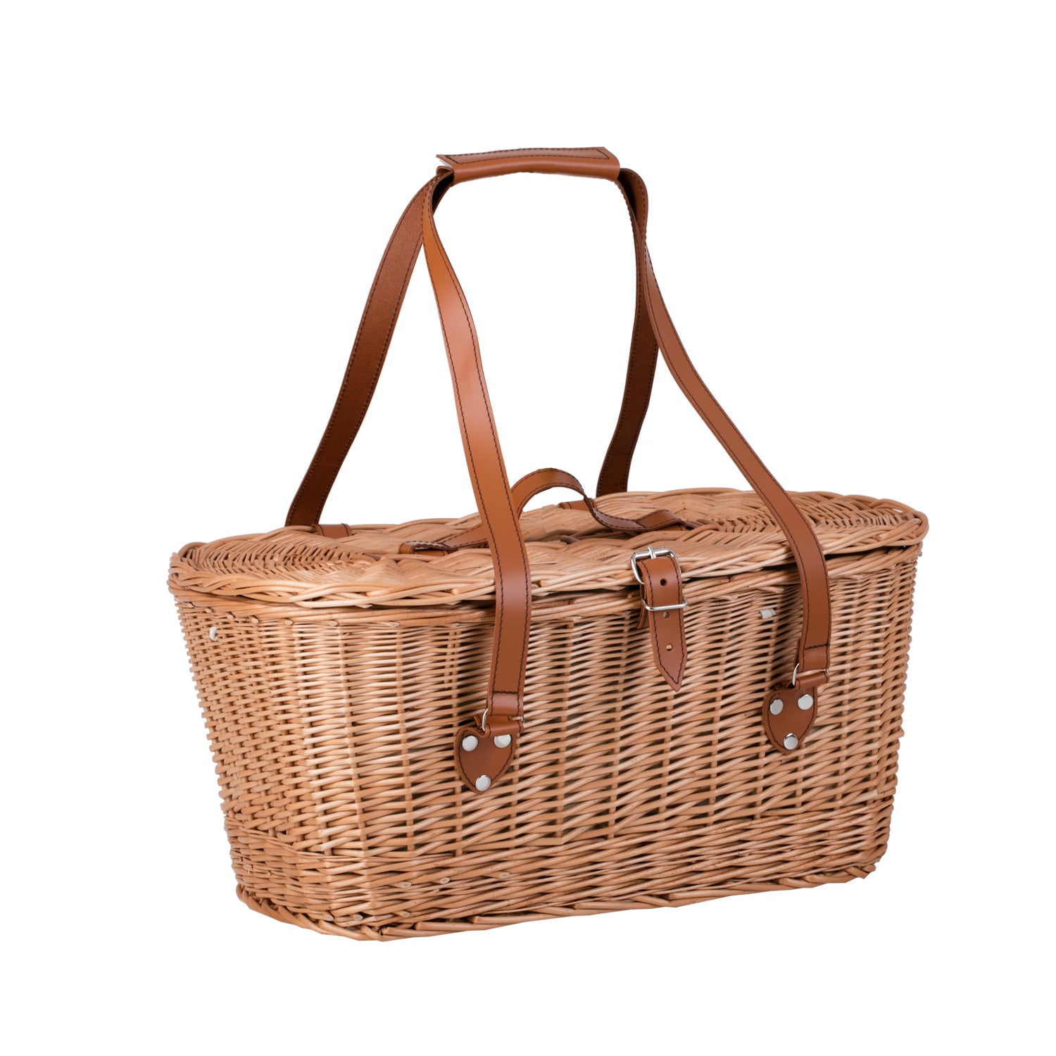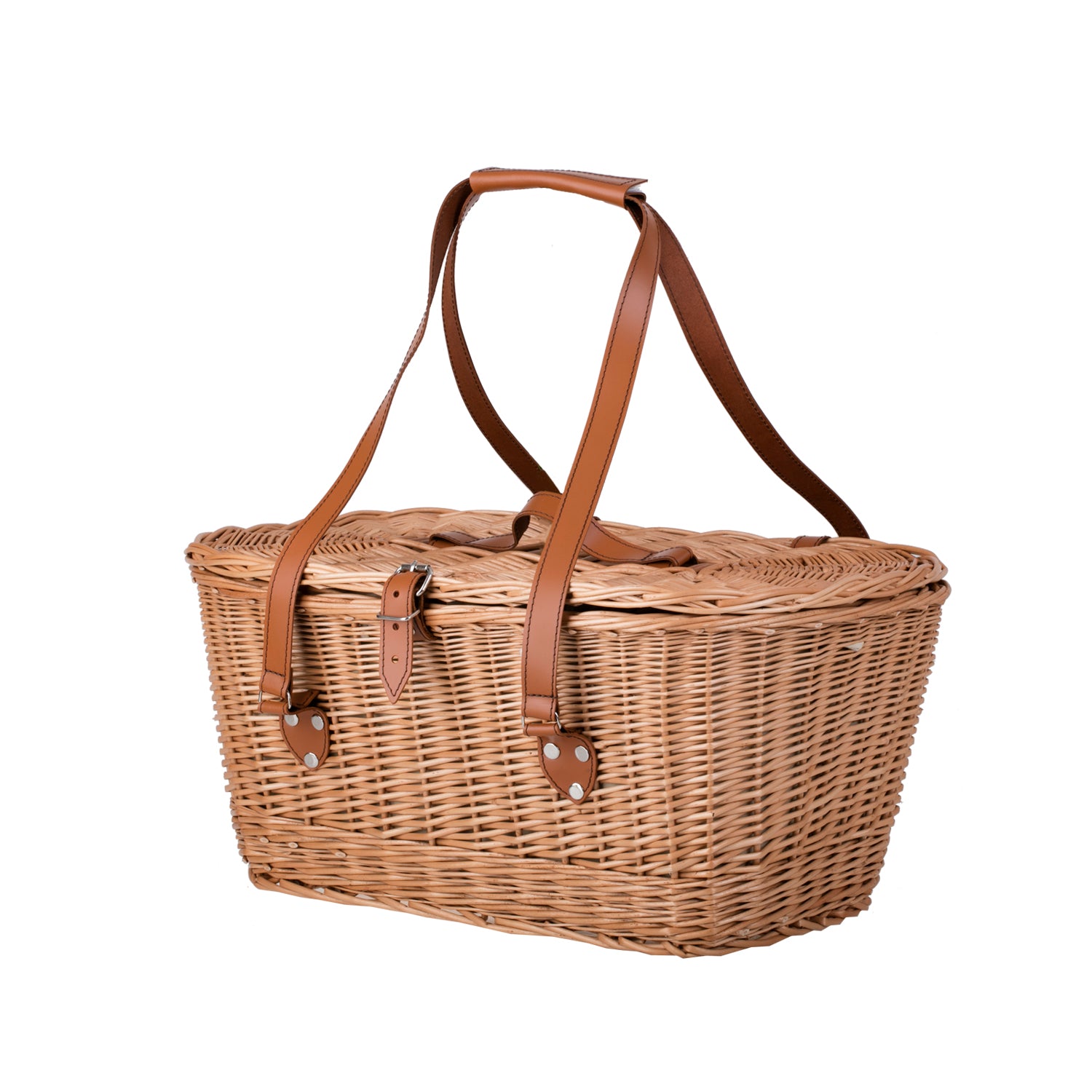 Kivara XXL rieten picknickmand met deksel en leren riemen