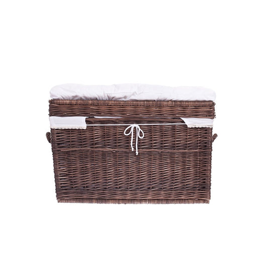Deze rieten mandkoffer is een functionele en milieuvriendelijke aanvulling voor de slaapkamer, woonkamer of hal. Handgevlochten van natuurlijke riet, onderscheidt hij zich door solide vakmanschap en een klassieke stijl die past bij diverse interieurstijlen. De grote inhoud maakt het mogelijk om beddengoed, dekens, kussens, maar ook speelgoed of seizoenskleding op te bergen, waardoor je huis netjes blijft.