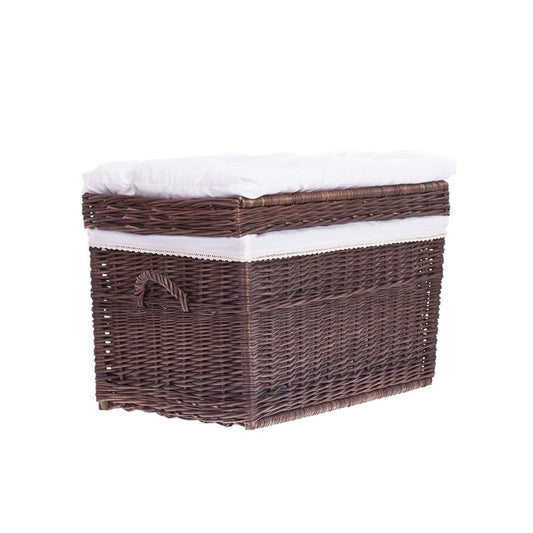 Kogia wicker mand met crèmekleurige afwerking, kussen, handvatten en deksel