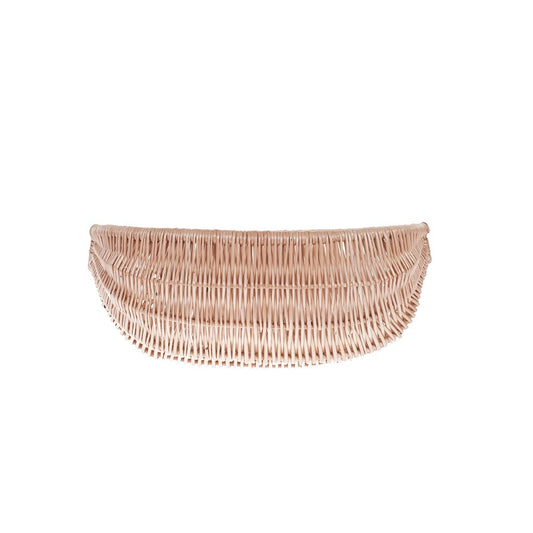 Elegante kom van natuurlijk riet betovert met een strokleurige tint en een zachte, harmonieuze lijn die de inhoud prachtig presenteert. De ovale vorm heeft een duidelijk gemarkeerde, afgeronde versterkte rand voor stabiliteit en lange levensduur. Twee discrete openingen in de zijwanden dienen als handvatten, en een gelijkmatig, luchtig vlechtwerk van dunne stengels creëert een licht en aangenaam aanvoelend oppervlak. De universele maat staat prachtig op tafel, het aanrecht of dressoir.