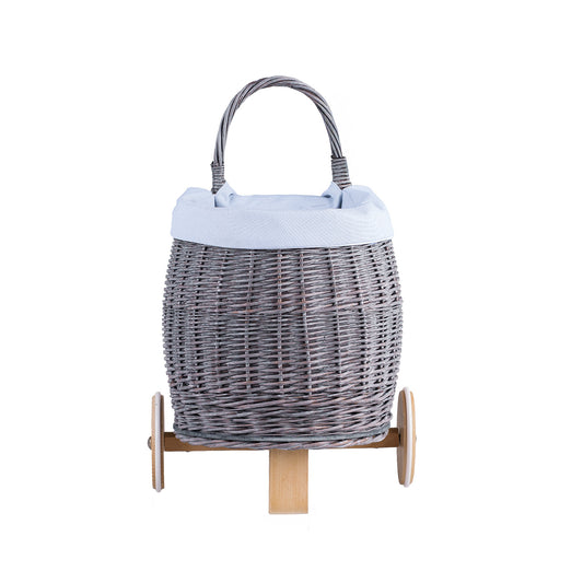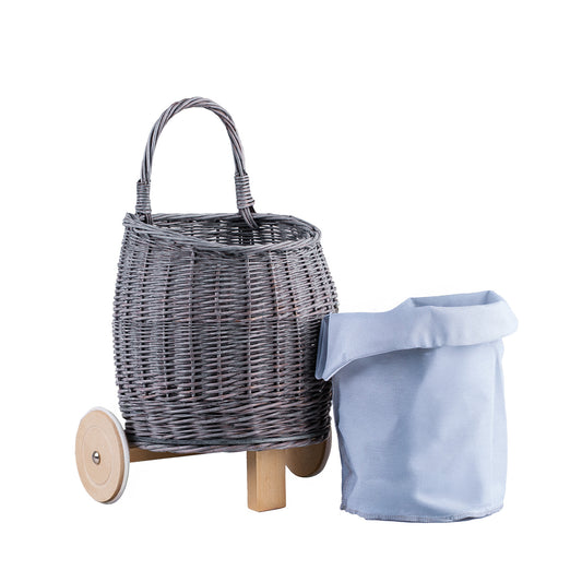Kies voor een natuurlijke, handgevlochten wagen met lichtblauwe rand en geef het kind een milieuvriendelijk cadeau dat vermaakt, leert en helpt om opgeruimd te blijven.