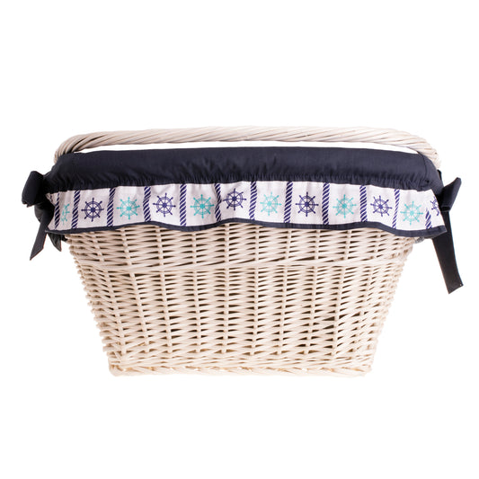 Jouw specificatie van Magnus gevlochten fietsmand voor op het stuur met marineblauwe bies en handvat