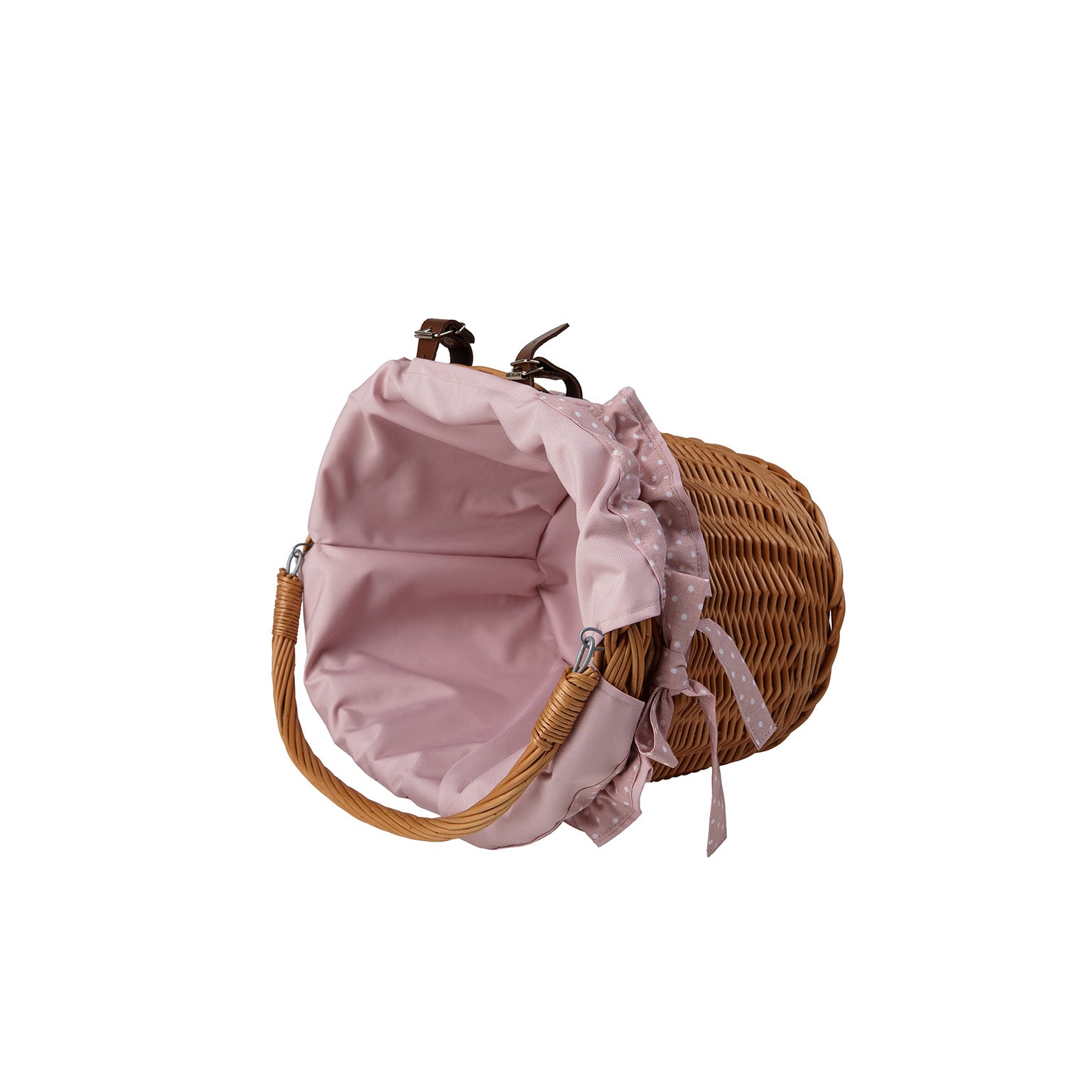 Magnus rieten fietskorf met roze bies, met handvat en riemen voor het stuur TheWickerStories