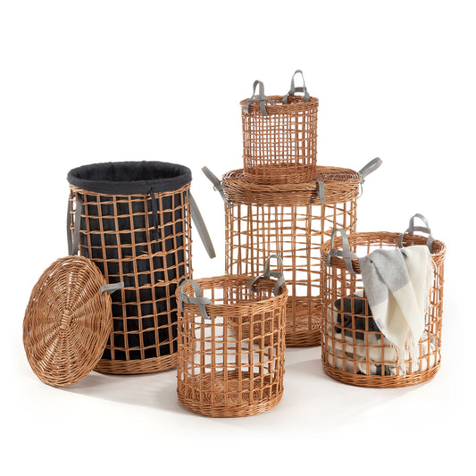 De open constructie zorgt voor een constante luchtcirculatie – ideaal als rotan wasmand, voor handdoeken, plaids en kussens. Zet hem bij de bank om plaids op te bergen, in de slaapkamer als organizer, of in de hal voor mutsen en accessoires. De versterkte rand behoudt de vorm bij dagelijks gebruik en de leren handvatten liggen prettig in de hand en maken het mogelijk de mand met één of beide handen te dragen.