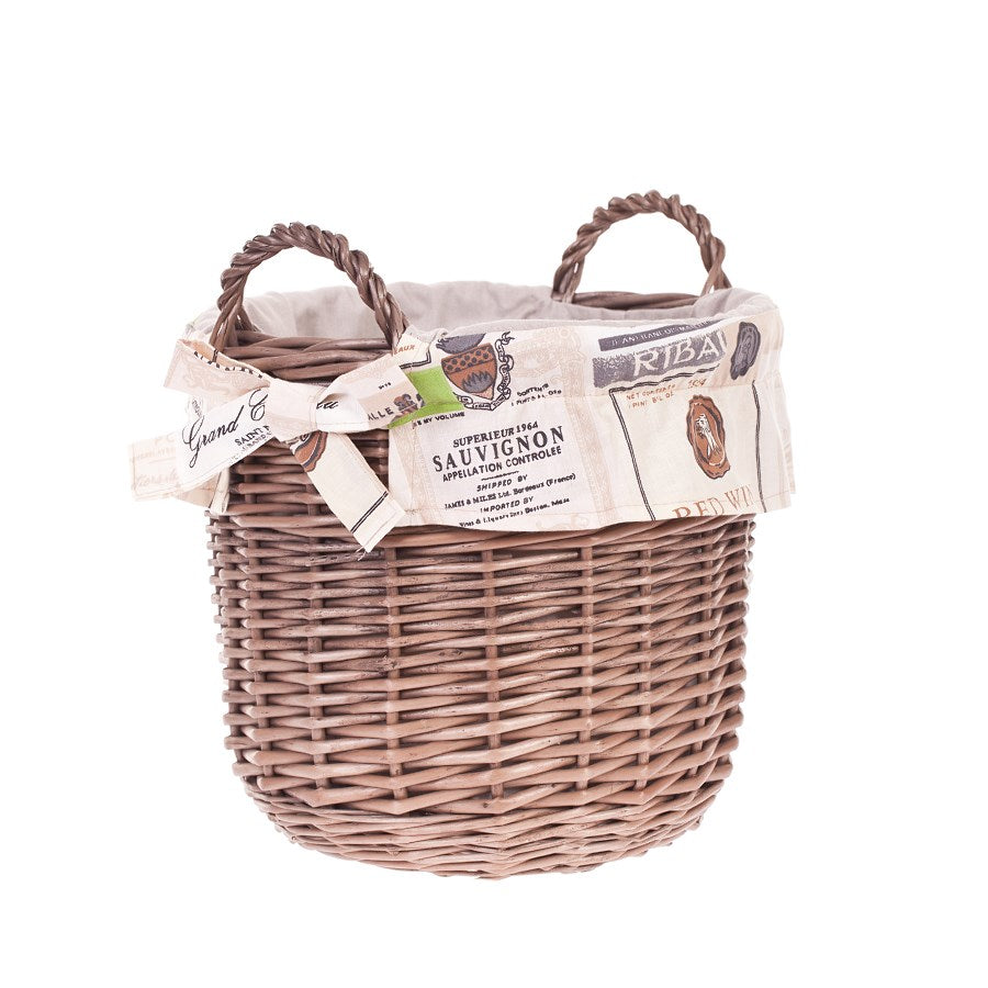 Deze wilgenmand valt op door zijn natuurlijke, gezellige karakter en verzorgde afwerking. Een dicht, gelijkmatig vlechtwerk van volle stokken vormt stabiele wanden, en de bovenrand is verstevigd met een decoratieve ring. Twee stevige, gedraaide handvatten maken het dragen makkelijk en geven het een lichte uitstraling. Het interieur is gevoerd met een crème voering met een elegante strik, die de inhoud beschermt en de warme tint van het wilgenhout benadrukt. De subtiele glans van het natuurlijke materiaal past mooi bij woondecoratie.