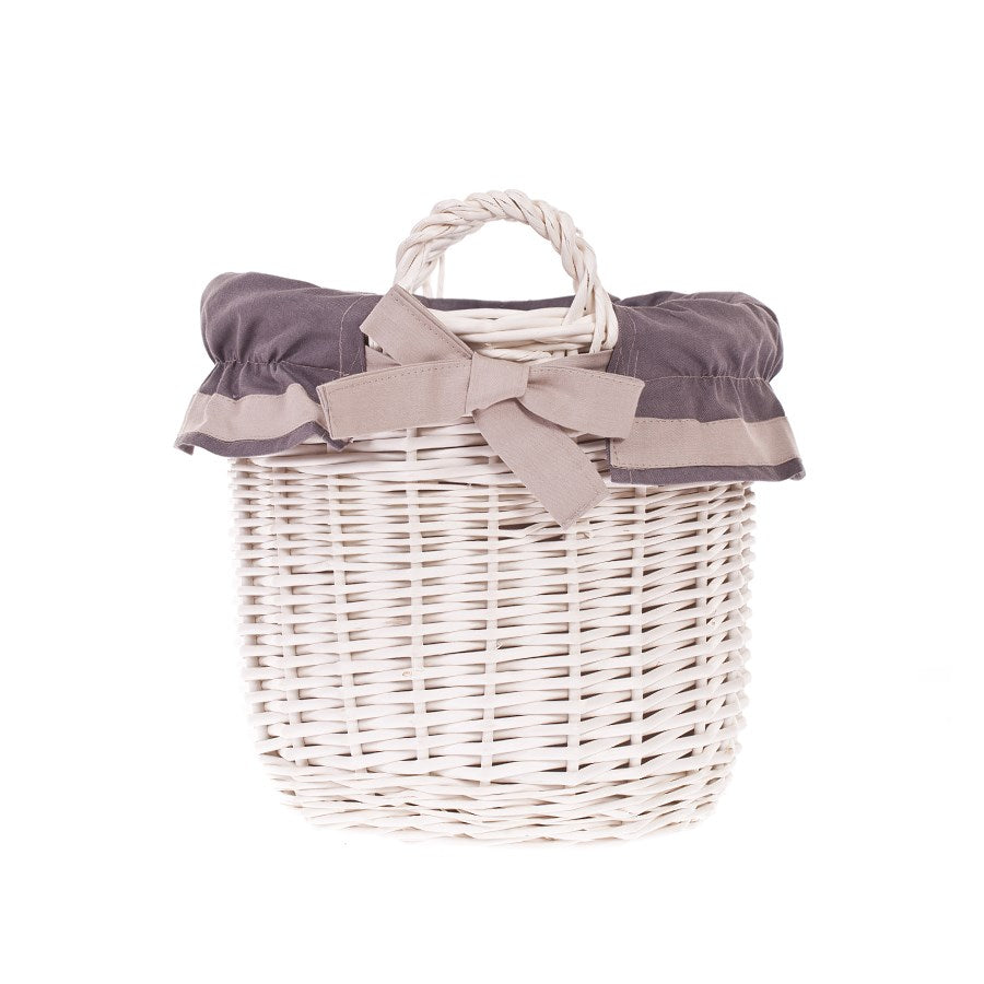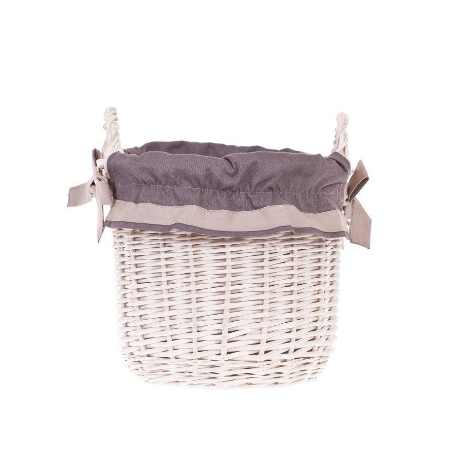 Perfect te gebruiken als opbergmand voor kleine spullen: sleutels, verzorgingsaccessoires, kaarsen, opladers of babyspullen. De grijze voering beschermt de inhoud en voegt zachtheid toe; deze is eenvoudig uit te nemen om op te frissen. De geringe hoogte maakt toegang gemakkelijk en de handgrepen maken het mogelijk de mand te verplaatsen naar waar hij nodig is. Ook een praktisch en stijlvol cadeau.