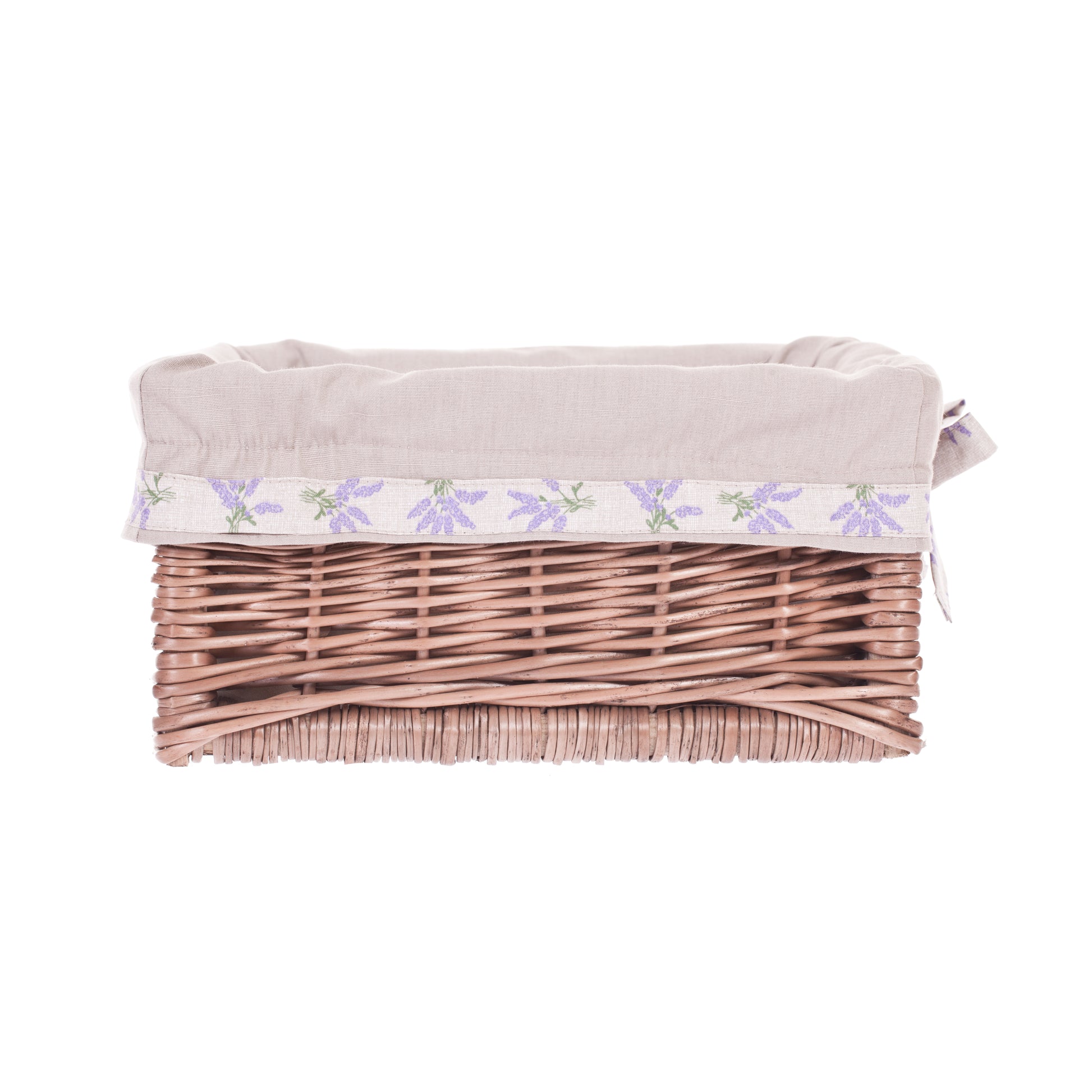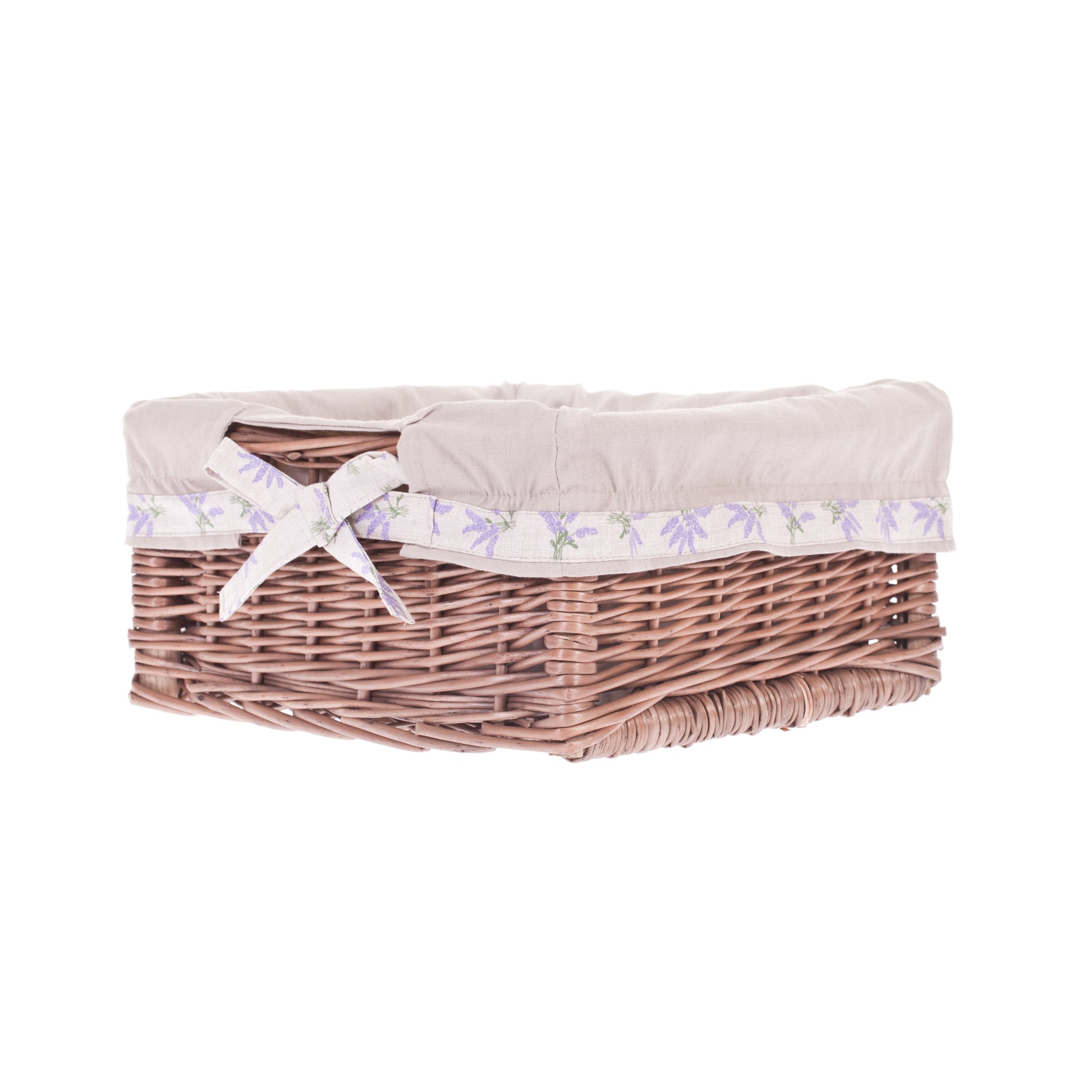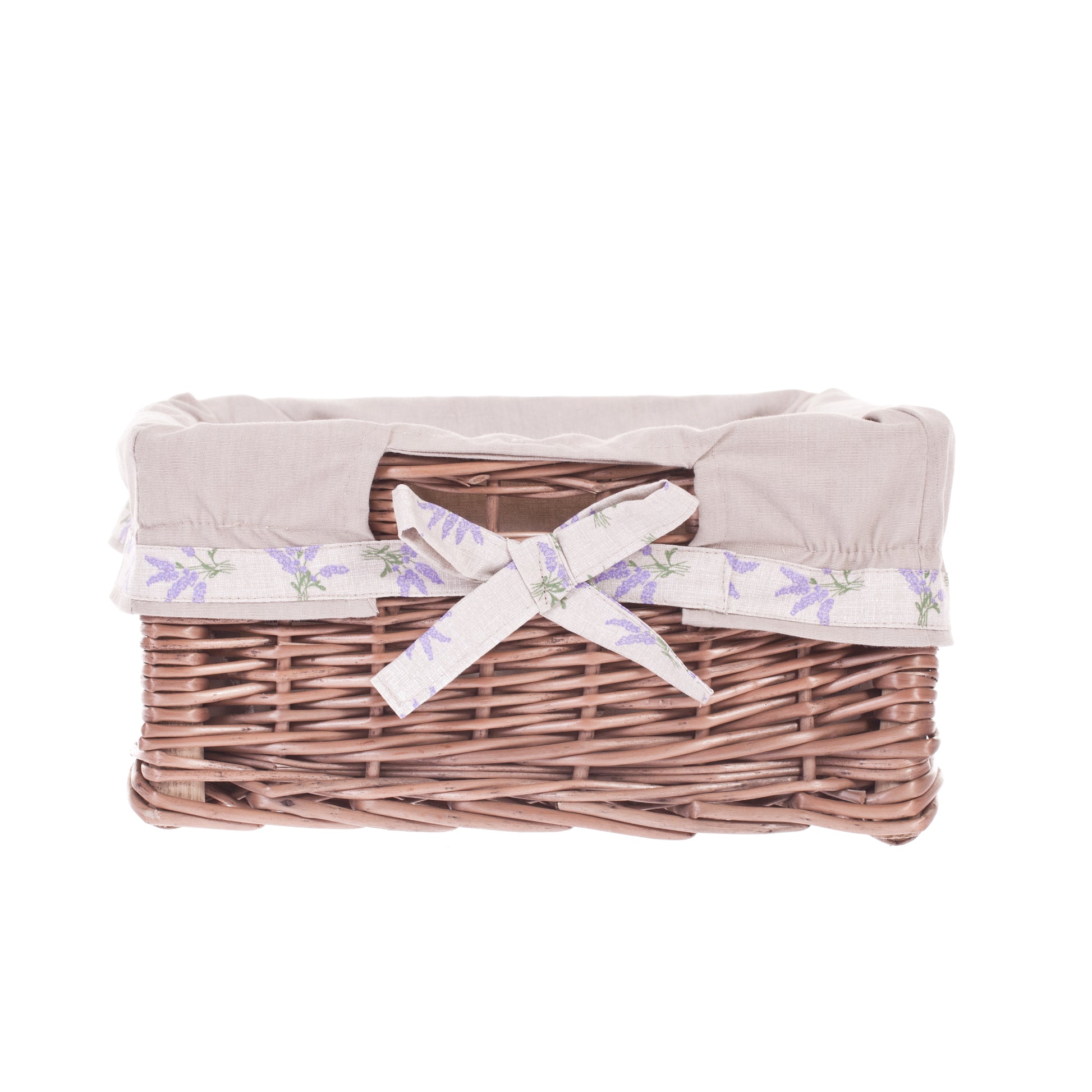 Nova rieten opbergmand voor op een rek met beige bies, handvatten en strikjes