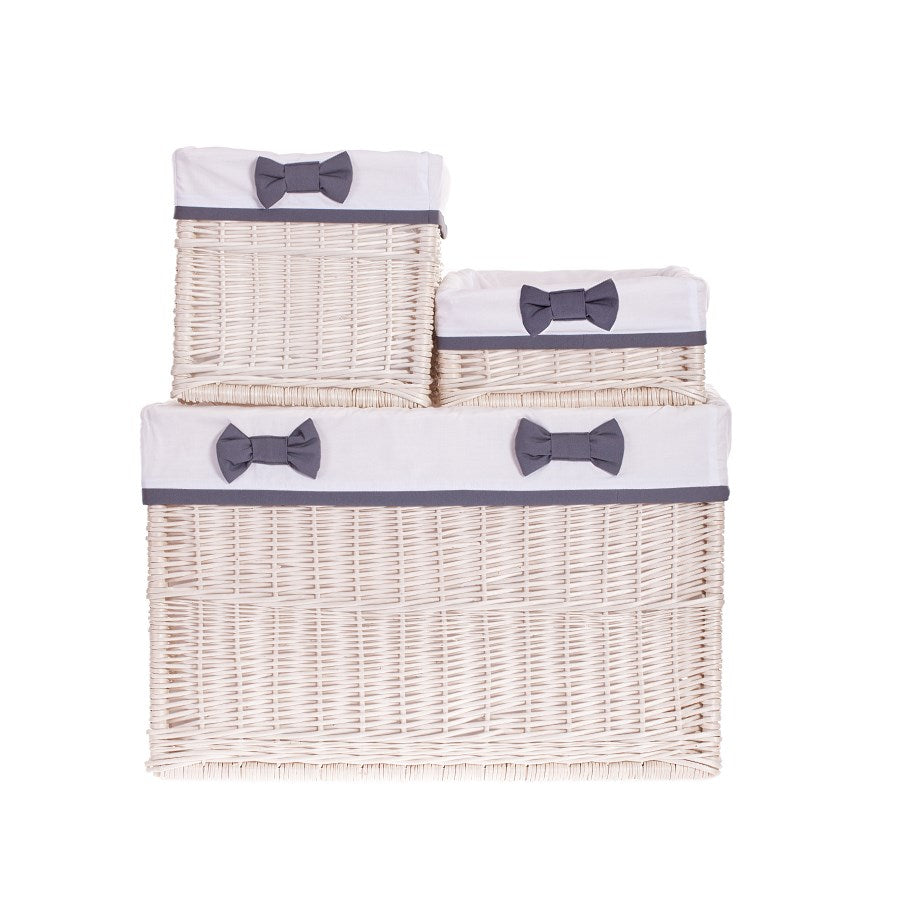 Jouw specificatie van Nova Rieten opbergmanden, set van 3, met witte bies en strikjes