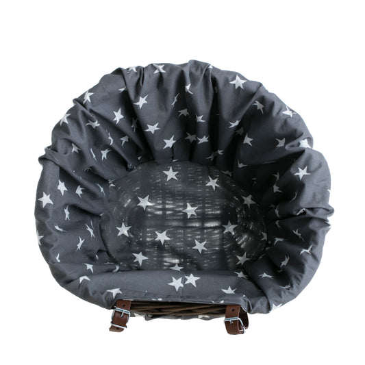 De montage duurt een ogenblik en vereist geen gereedschap: klik de riemen simpelweg op het juiste gaatje om een stevige bevestiging zonder speling tijdens het rijden te verkrijgen. De voering kan worden verwijderd om te wassen of snel op te frissen, en het riet is eenvoudig te reinigen met een vochtige doek. De stijve rand behoudt de vorm, waardoor de mand gemakkelijk te vullen is en niet vervormt onder gewicht. Degelijke afwerking zorgt voor een lange levensduur bij dagelijks gebruik.