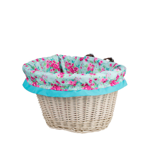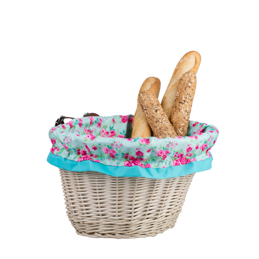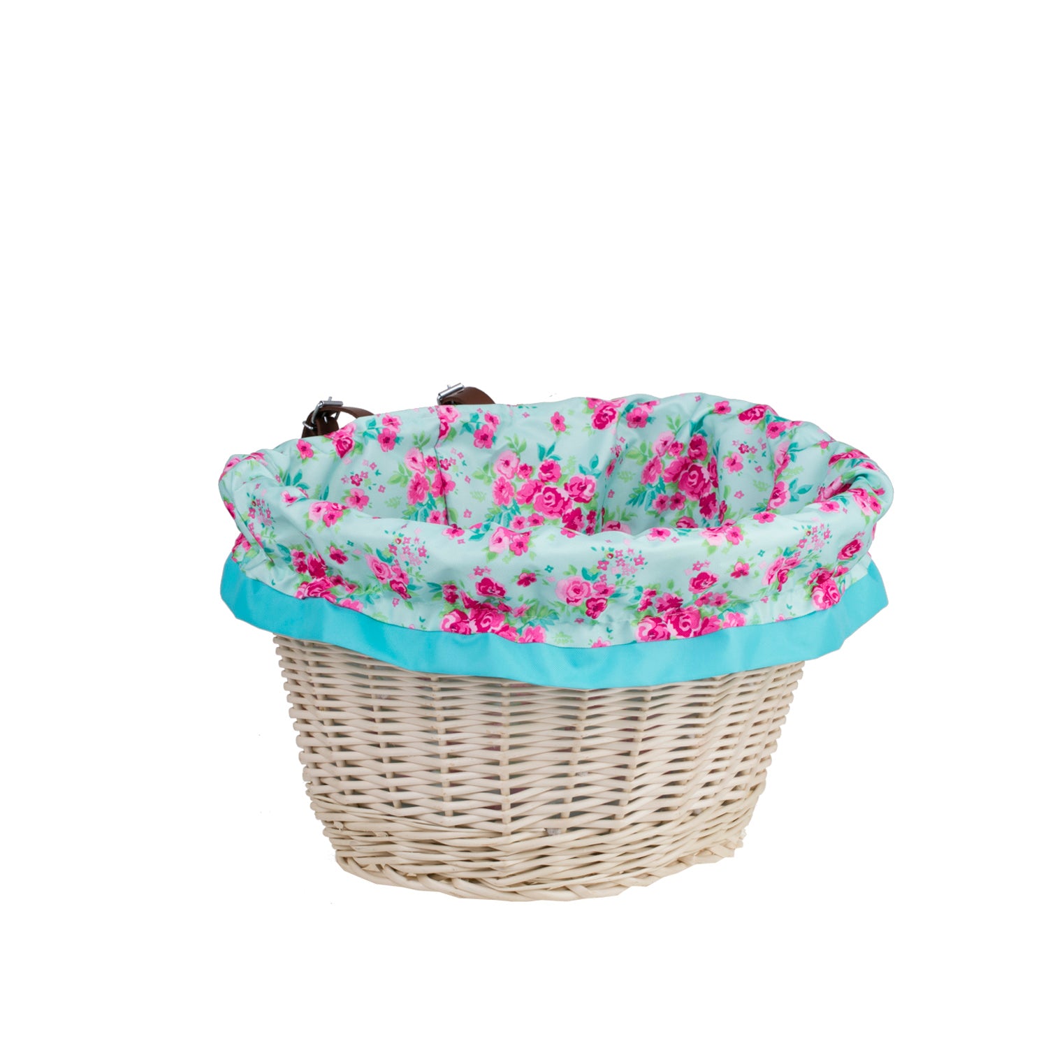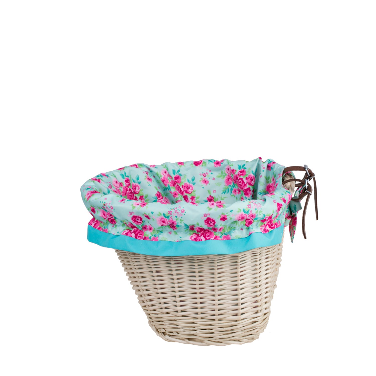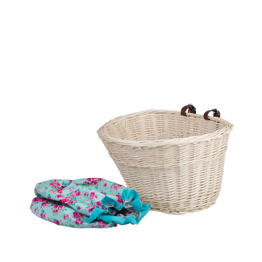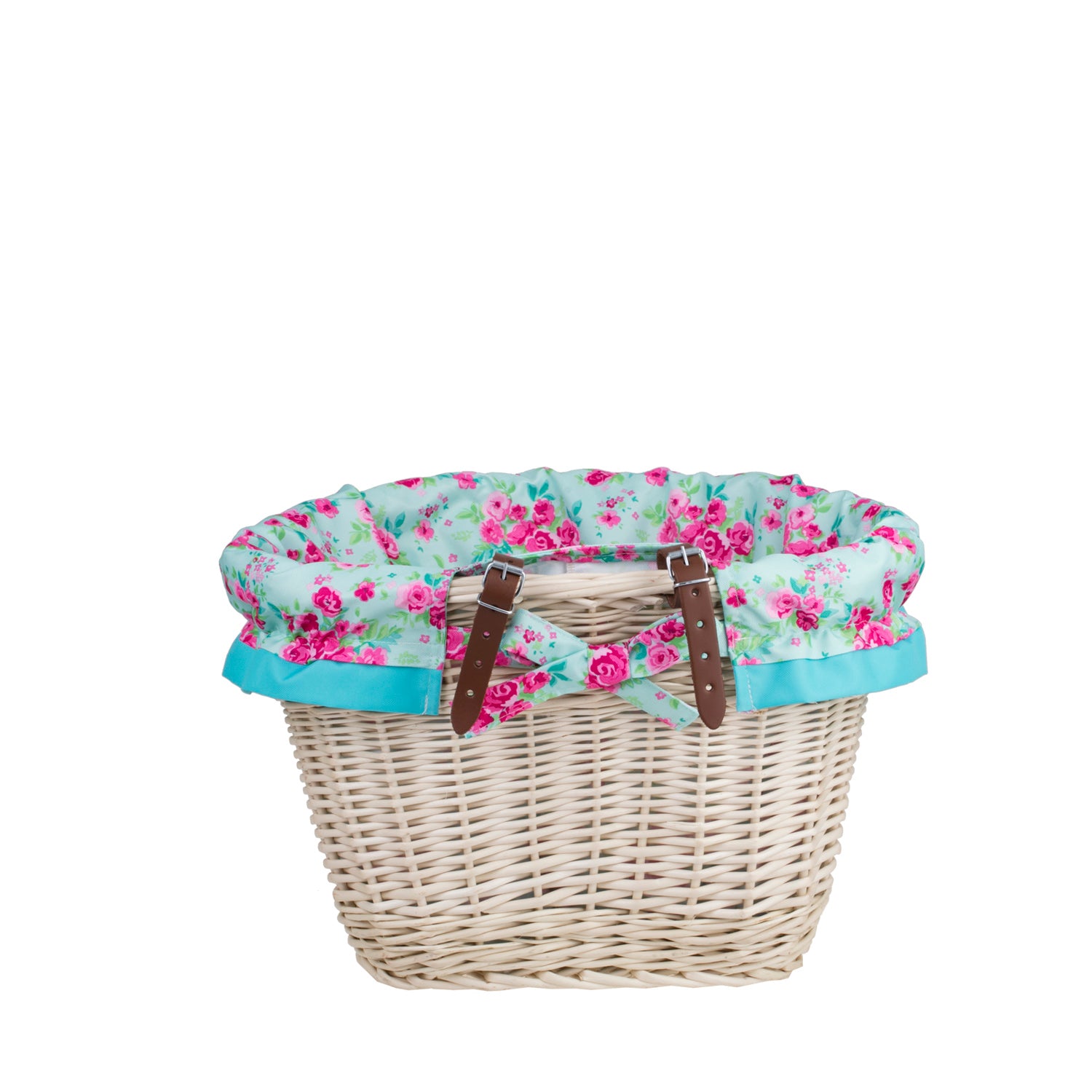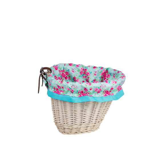 Kies voor een ecologische, met de hand gevlochten wilgenmand met turquoise voering — voeg hem vandaag nog aan je winkelwagen toe en geniet van comfort en stijl bij elke rit!