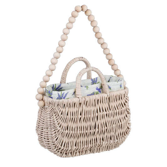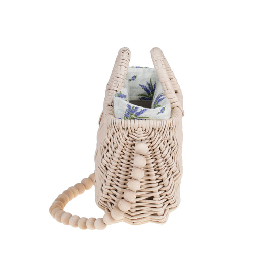 Raja rieten handtas met witte voering en handvat