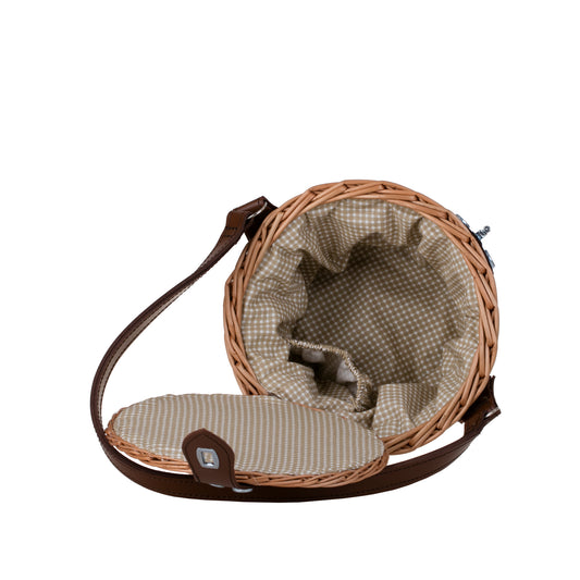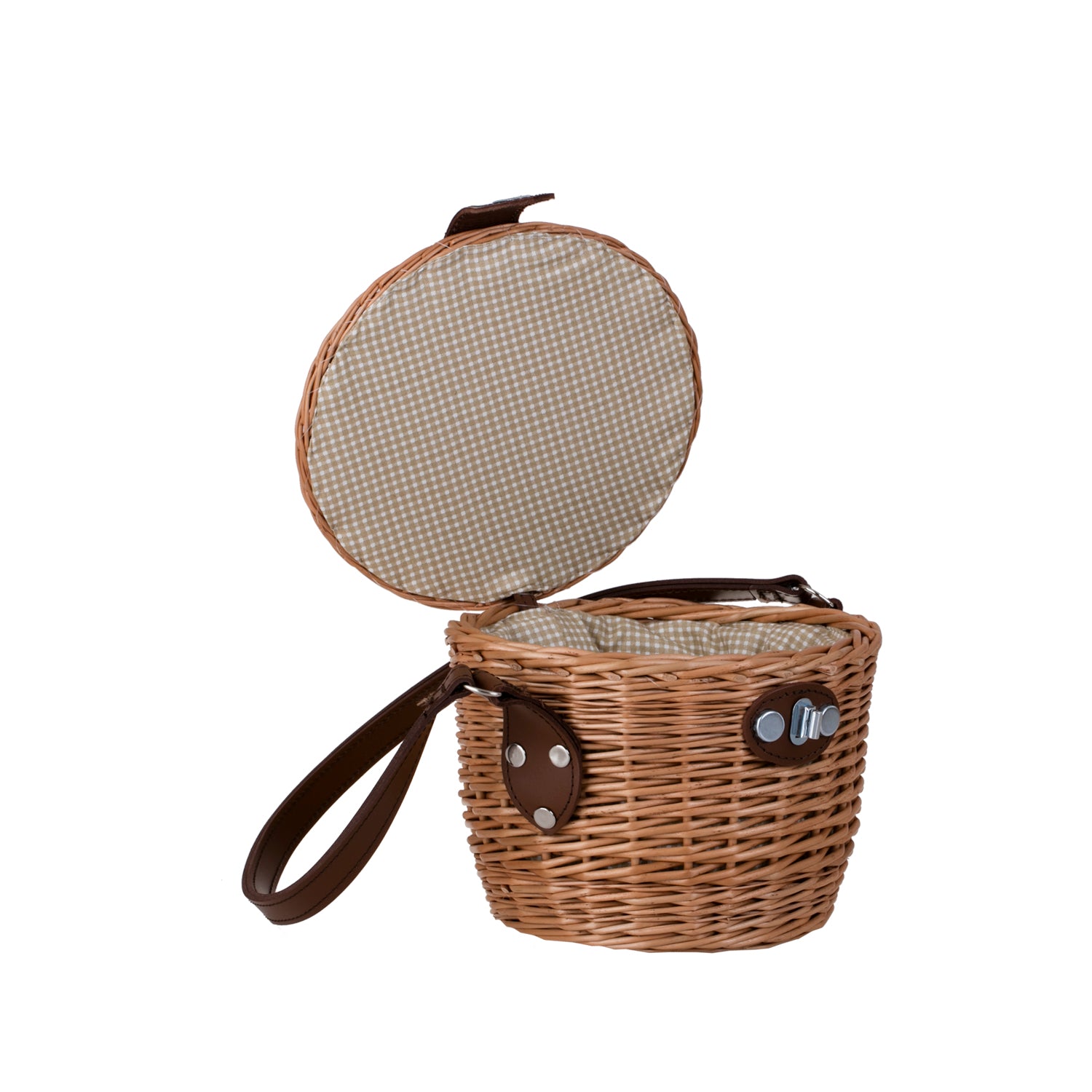 Jouw specificatie van Rivora Rieten schoudertas met deksel en leren riem