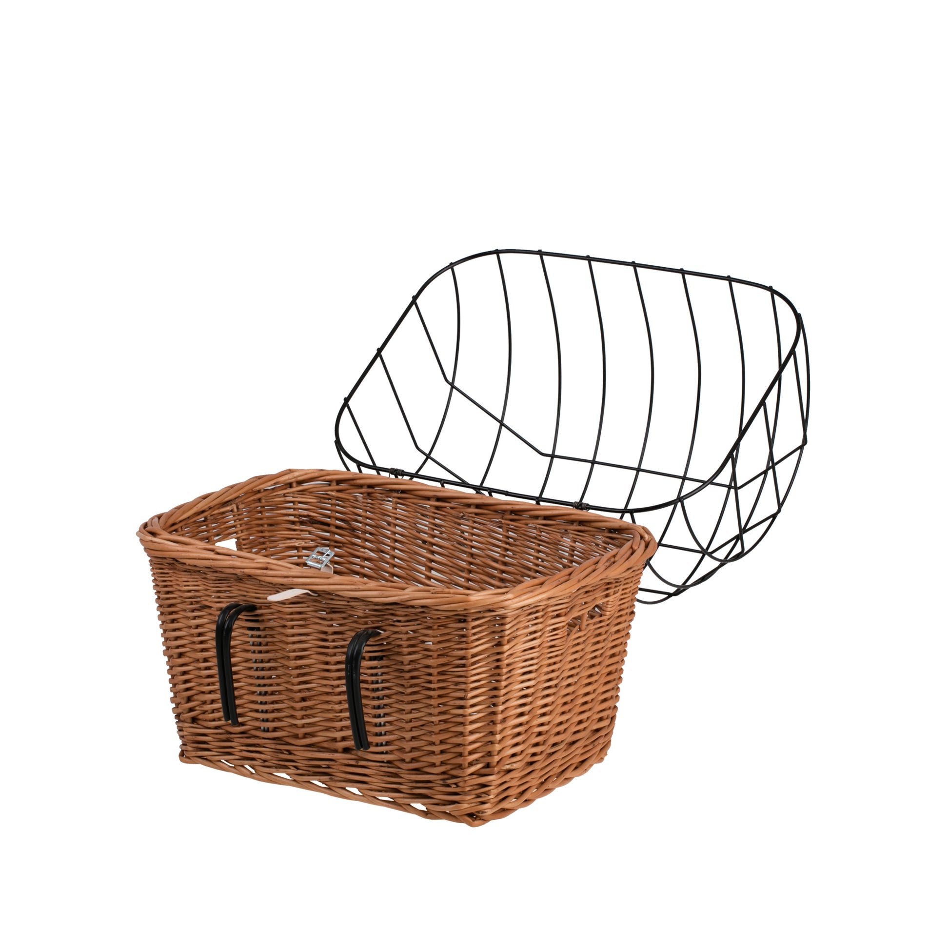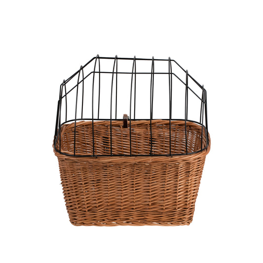 Timoria rieten fietskorf voor huisdieren met deksel en metalen rooster, met leren riemen