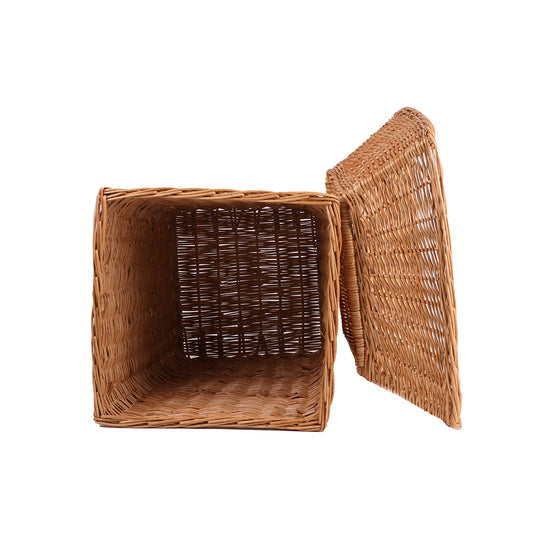 Voor de vervaardiging is Europese wilg uit hernieuwbare teelten gebruikt, handgevlochten door ervaren ambachtslieden. Het natuurlijke materiaal is duurzaam, bestand tegen dagelijks gebruik en krijgt een mooie patina. Elk exemplaar is uniek; subtiele verschillen in de weving tonen authentiek vakmanschap en het gebruik van een hernieuwbare grondstof.