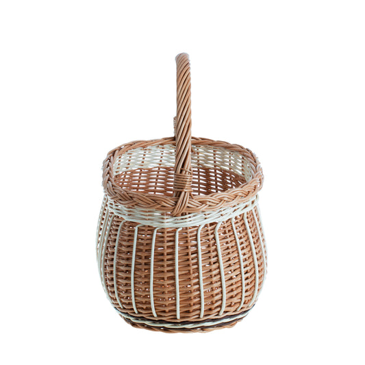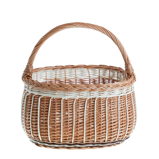 Buiten voor boodschappen is hij ideaal als picknick- of paddenstoelenmand en thuis als opbergmand. Hij organiseert dekens, handdoeken, kranten of garens en in de keuken biedt hij plaats aan aardappelen, appels en uien. Hij kan dienstdoen als cadeaubasis gevuld met lekkernijen of als decoratief accent in eco- en boho-interieurs. Reiniging: klop het stof eruit, veeg af met een vochtige doek.
