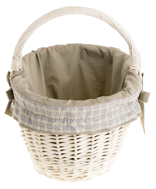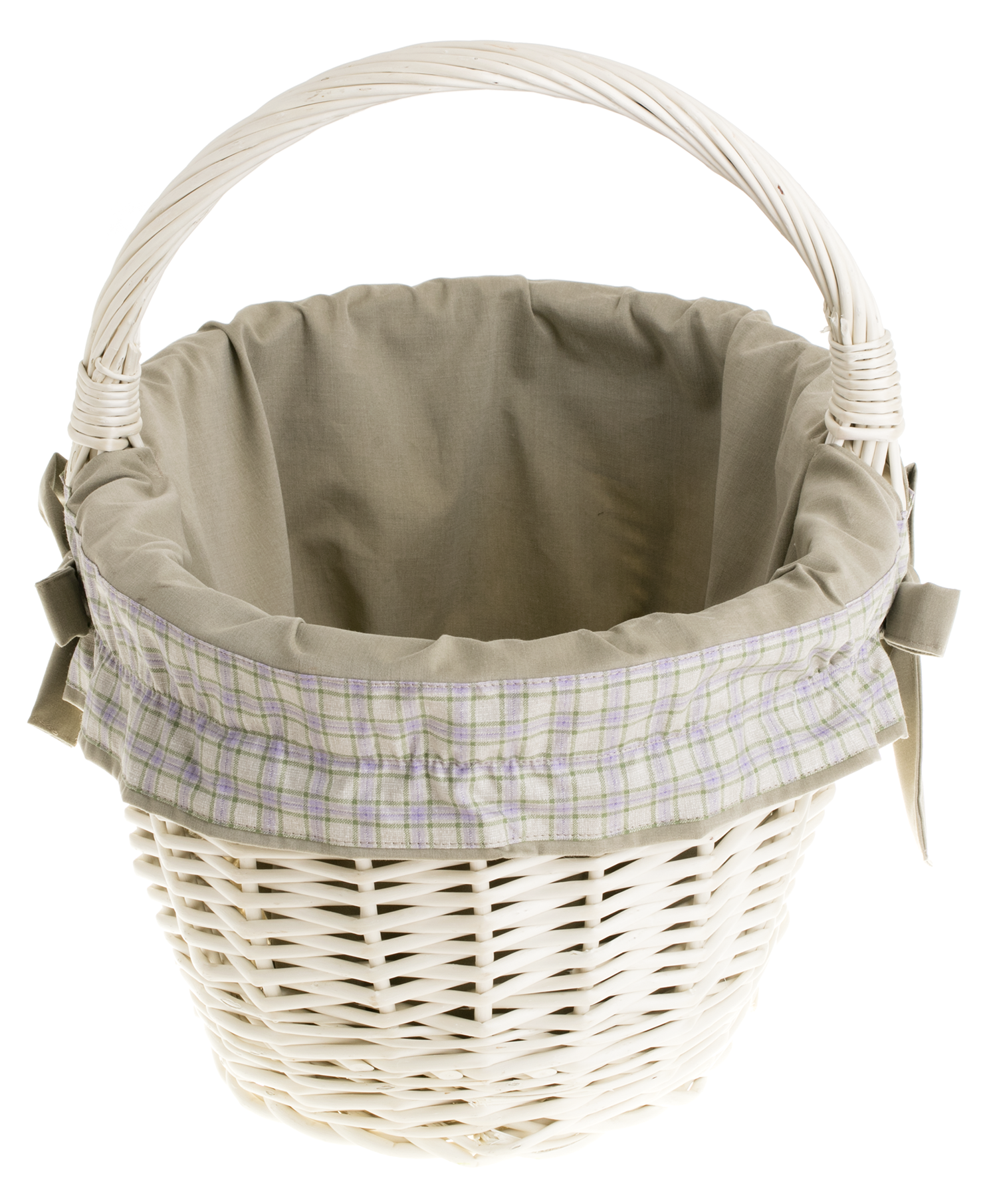 Deze gevlochten boodschappenmand in crèmewit betovert met zijn heldere, elegante uitstraling. De romp, met een dicht vlechtwerk, is stevig en fraai, en het gevormde handvat zorgt voor een veilige, comfortabele greep. De binnenkant en rand zijn afgewerkt met zacht crèmekleurig katoen en een subtiel strikje. De ovale lijn en stabiele bodem maken inpakken gemakkelijk.