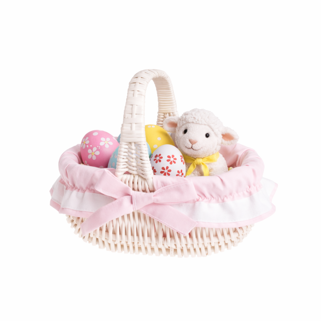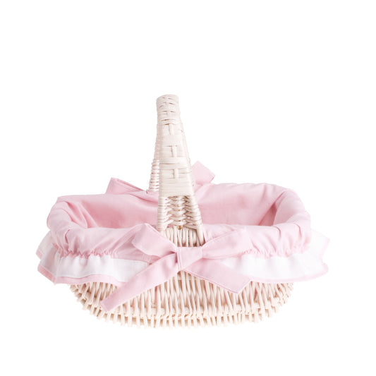 Willesia gevlochten paasmandje voor de zegening met roze afwerking en handvat TheWickerStories