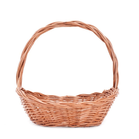 De klassieke cadeaumand van riet valt op door eenvoud en stevigheid. Een lage, open mand met soepel gevormde wanden en een decoratief gevlochten randje dat elegantie toevoegt. Een hoog, enkel handvat gedraaid van meerdere staven zorgt voor comfortabel dragen en stabiliteit. De natuurlijke, warme tint van het riet laat de kleur van de inhoud mooi uitkomen.