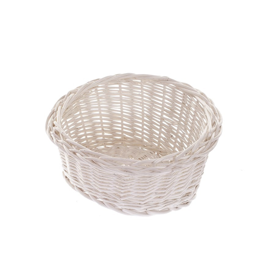 Een elegante cadeaumand van wilgentenen valt op door zijn crèmekleur en lichte, harmonieuze lijn. De ovale schaal met lage wanden toont de inhoud mooi en de bovenrand, gevlochten tot een decoratieve vlecht, geeft het geheel een nobel karakter. Dichte, gelijkmatige vlechtwerk zorgt voor stabiliteit, de bodem is stevig en vlak. De randen zijn strak afgewerkt en het oppervlak voelt prettig aan. De mand is open, ongevoerd en zonder handvatten – minimalistisch en functioneel.