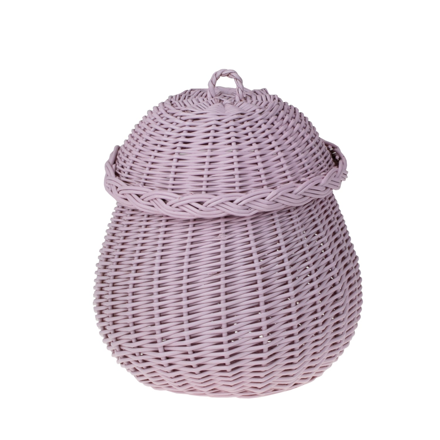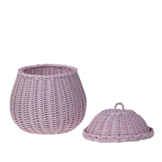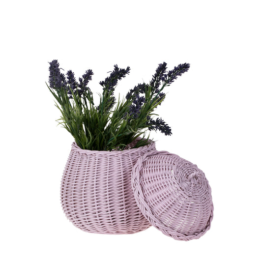 Dit delicate rieten juwelenkistje valt op door een pastelroze afwerking en een zorgvuldig vlechtwerk. De romp is vol en sierlijk, en de rand is versierd met een decoratieve vlecht. Het passende deksel sluit mooi aan en heeft een klein lusje om op te pakken. Dicht vlechtwerk en een stabiele bodem zorgen ervoor dat het stevig staat op een plank, commode of badkamerblad.